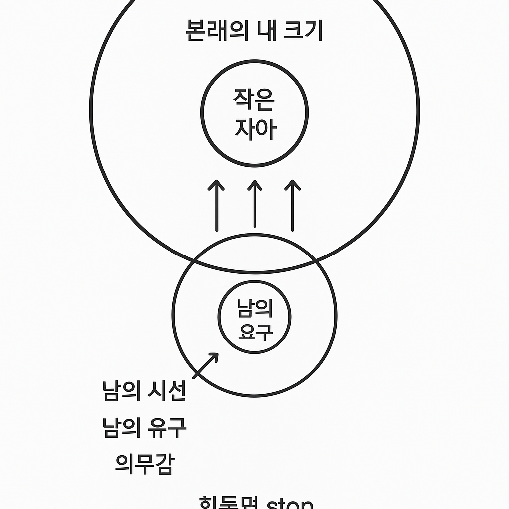 나 자신 본래 자아 크기가 있는데 외부 영향으로 인해 자아가 사라지고 왜곡되고 있다