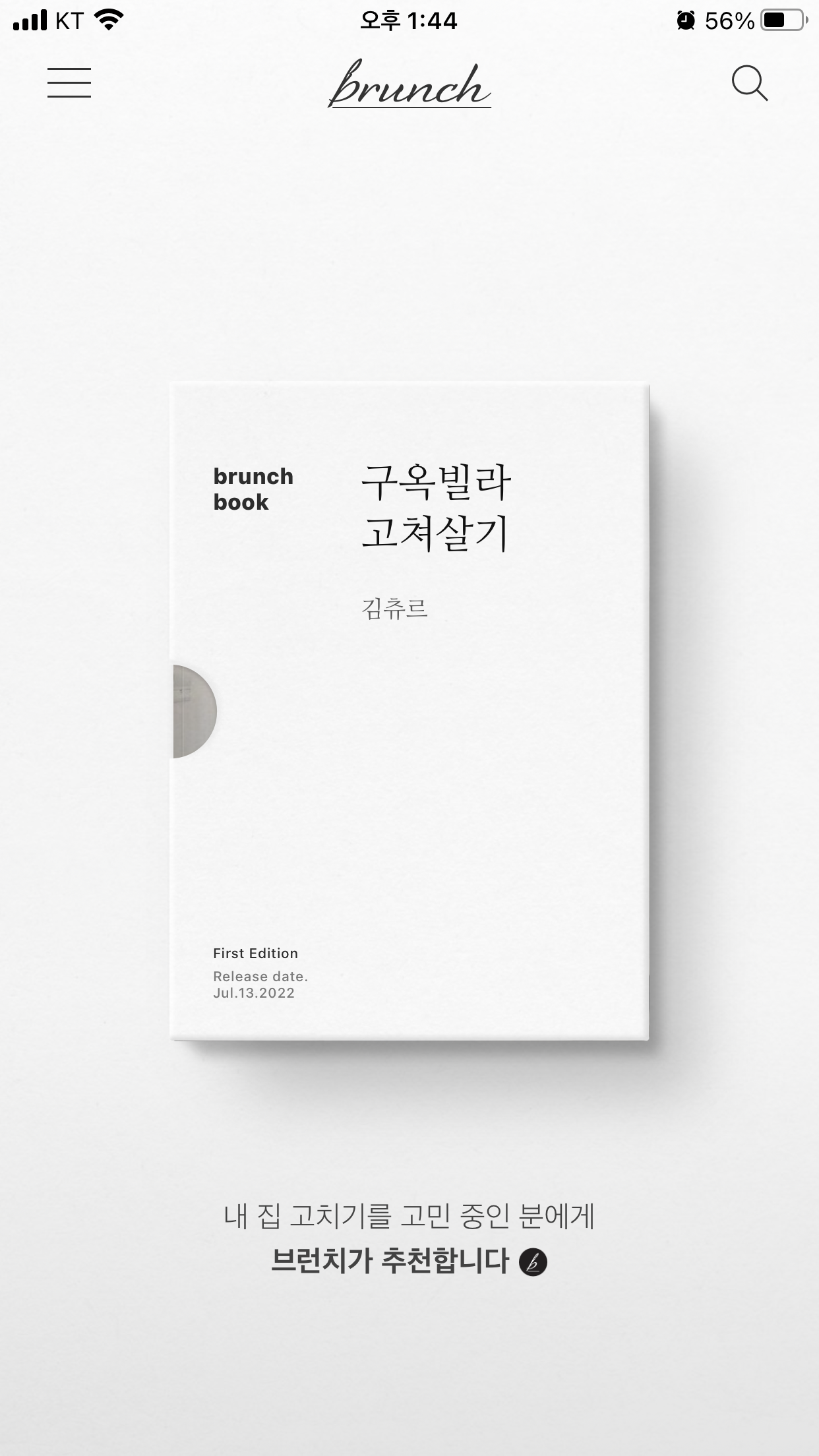 다른 사람들 브런치 어플에도 내 브런치북이 보인다는 친구의 확인사살을 받은 후에야 나는 비로소 내 브런치북이 메인 화면에 노출됐다는 사실을 받아들일 수 있었다.