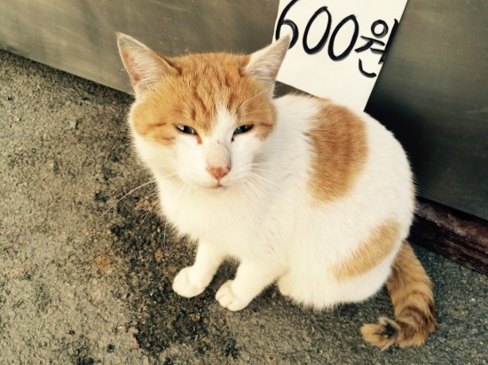 계산하고 떠나려는 나를 보자 표정이 뚱하게 변했다. 아주머니께서 키우시는 고양이인 줄 알았으나 법기 저수지 주변에 사는 고양이란다. 원래 같이 다니던 짝이 있었는데, 며칠 전 어묵 가게 앞 도로에서 차에 치여 죽고 말았다. 그날 이후 고양이는 도로 주변에서 서성이고 있다고 한다. 그 말을 듣고 고양이를 내려다보니 너무나 외롭고 쓸쓸해 보였다. 집에 와서 찍은 사진을 다시 보니 짝이 죽은 자리를 멍하니 바라보는 것 같다.