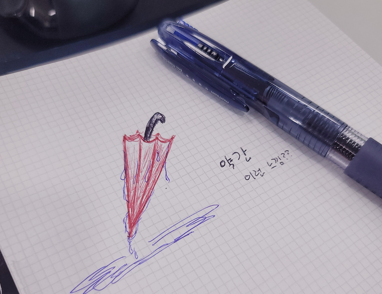 그리곤 자연스레 떠오른 물 떨어지는 접힌 우산.