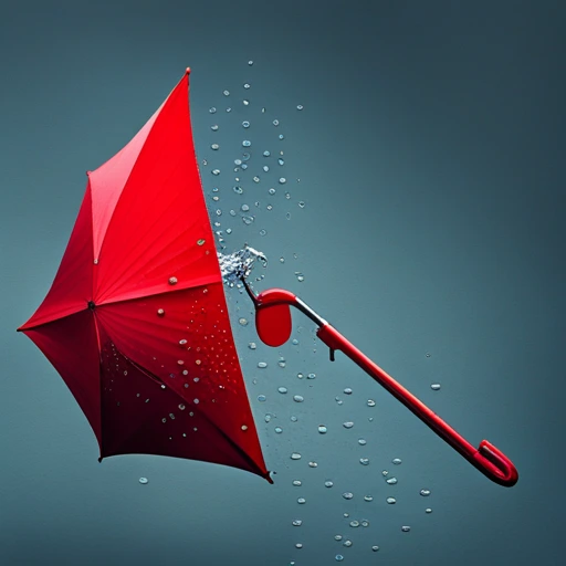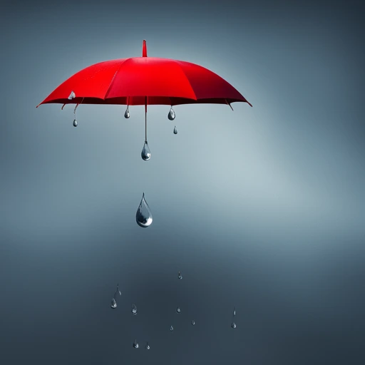 펼치지 않은 빨간 우산에서 물이 뚝뚝 떨어지는 모습을 그려줘