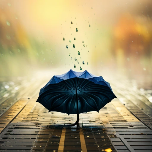 비 오는 날 물기가 뚝뚝 떨어지는 우산을 그려줘