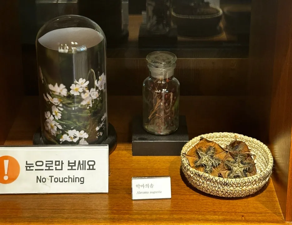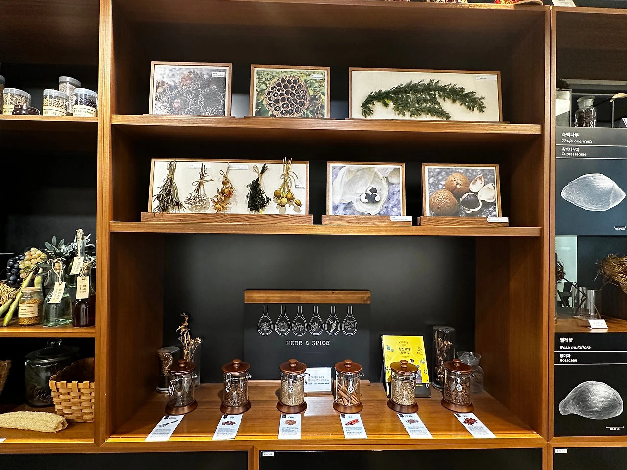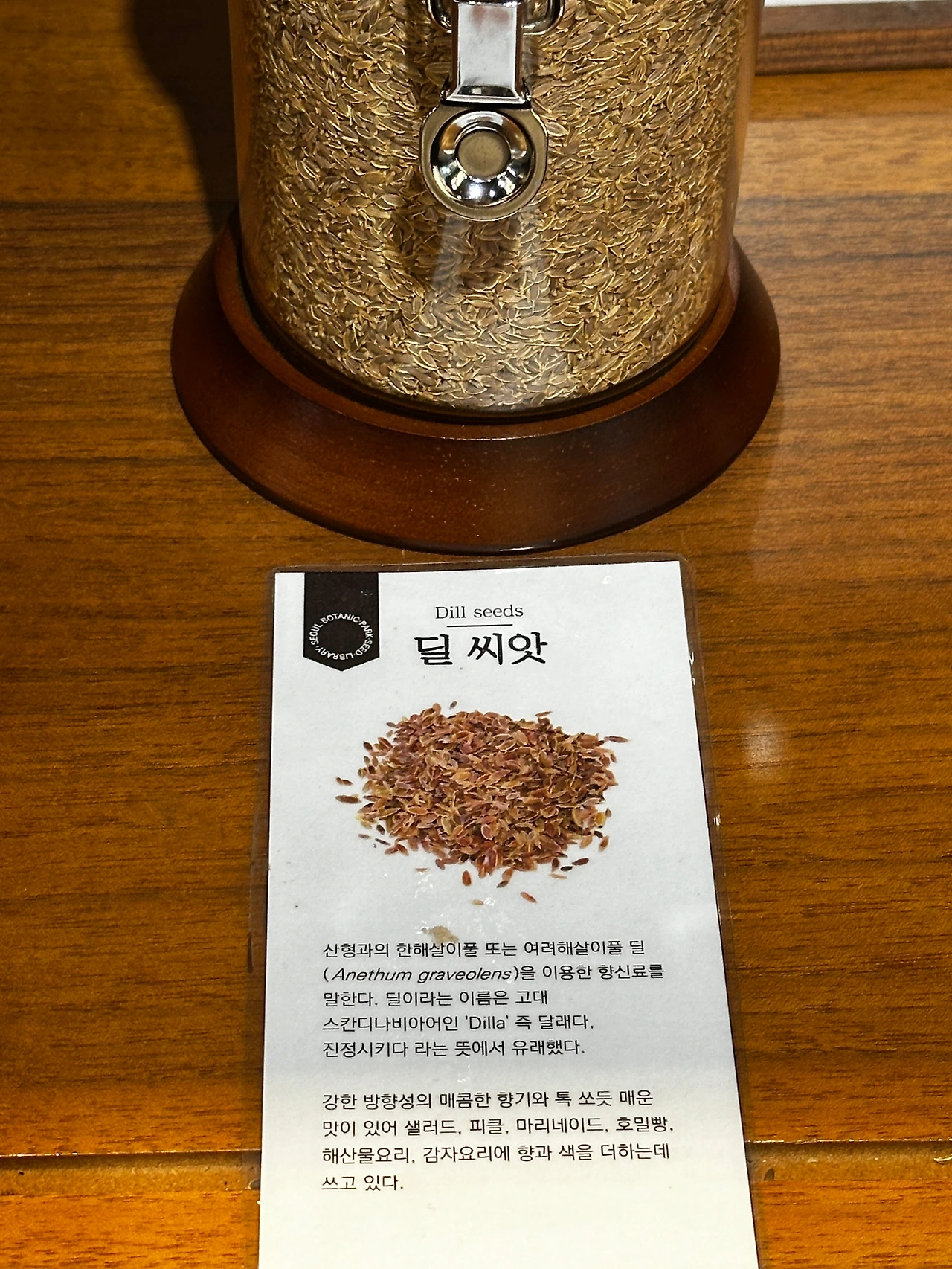 팔각, 콩류, 메밀 등 평상시에 볼 수 있는 낯설지 않은 소재들도 있었는데, 원통형 케이스에 뚜껑면을 정면으로 사용해 한눈에 씨앗들의 생김새를 관찰하고 비교하기 쉽도록 전시되어 있다.