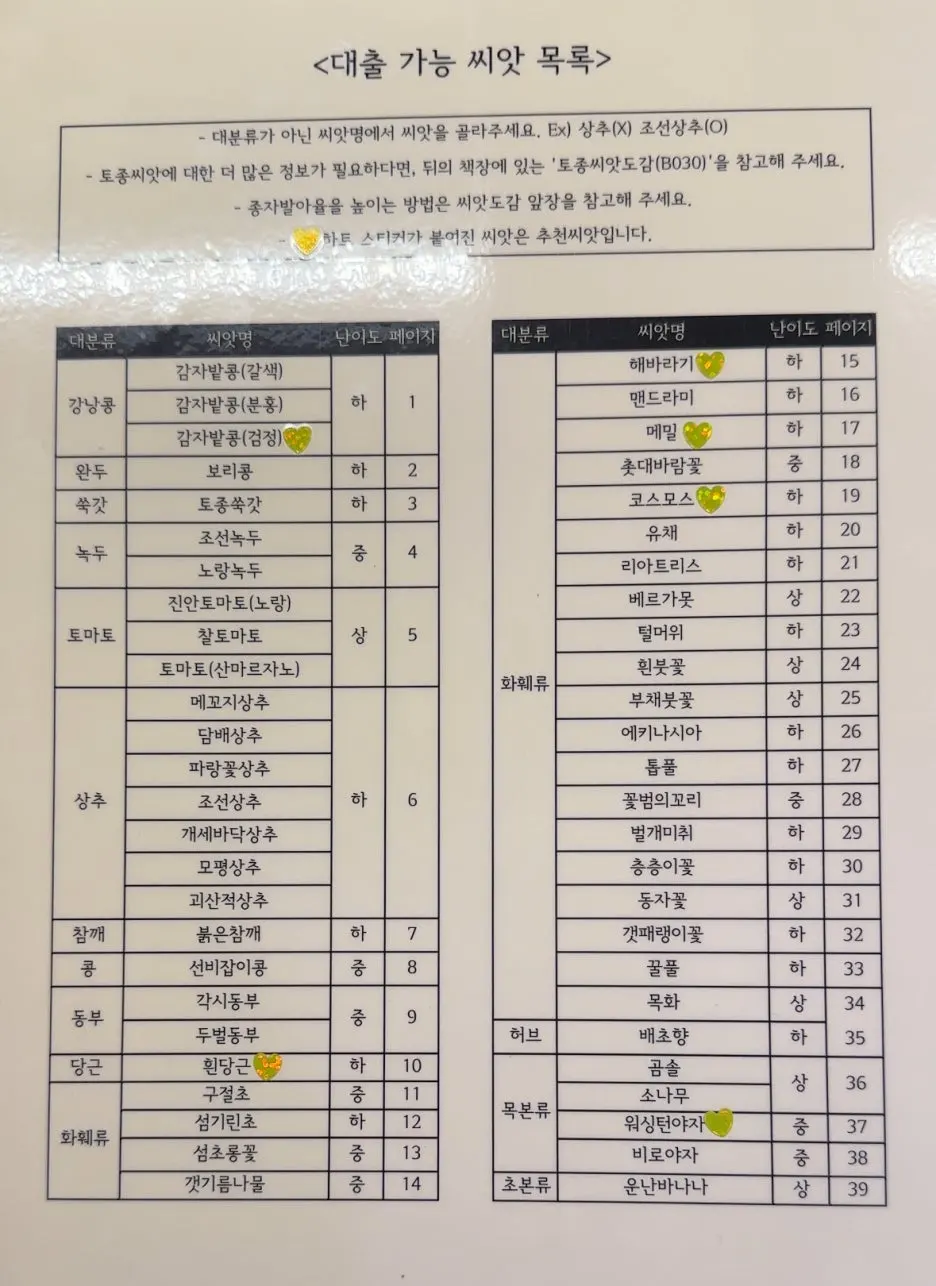 분명 대출 신청 태블릿에 손가락 꾹 눌러 약속했다. 반드시 씨앗을 반납하겠다고. 글을 작성하는 시점 흰 당근을 갚았느냐 묻는다면... 들려줄 것은 긴 침묵뿐. 도서관 대출자 정보에 블랙리스트로 표기되었는지 모른다. (씨앗대출은 반납이 의무이긴 해도 상환불가시 시설 재방문 문전박대 당하거나, 잡아가지는 않는다...(?)