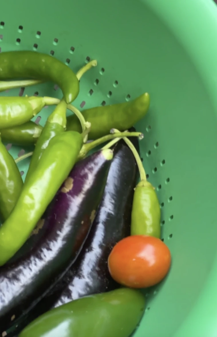 서운해 하시던 시어머님 생각에 두 달 뒤 추석에 대망의 고추 수확과 가지 수확에 성공했다. 남편과 추석 연휴 첫날 새벽에 가지 몇 가락, 청양고추 몇 개와 추석선물을 챙겨 시댁에 갔다.