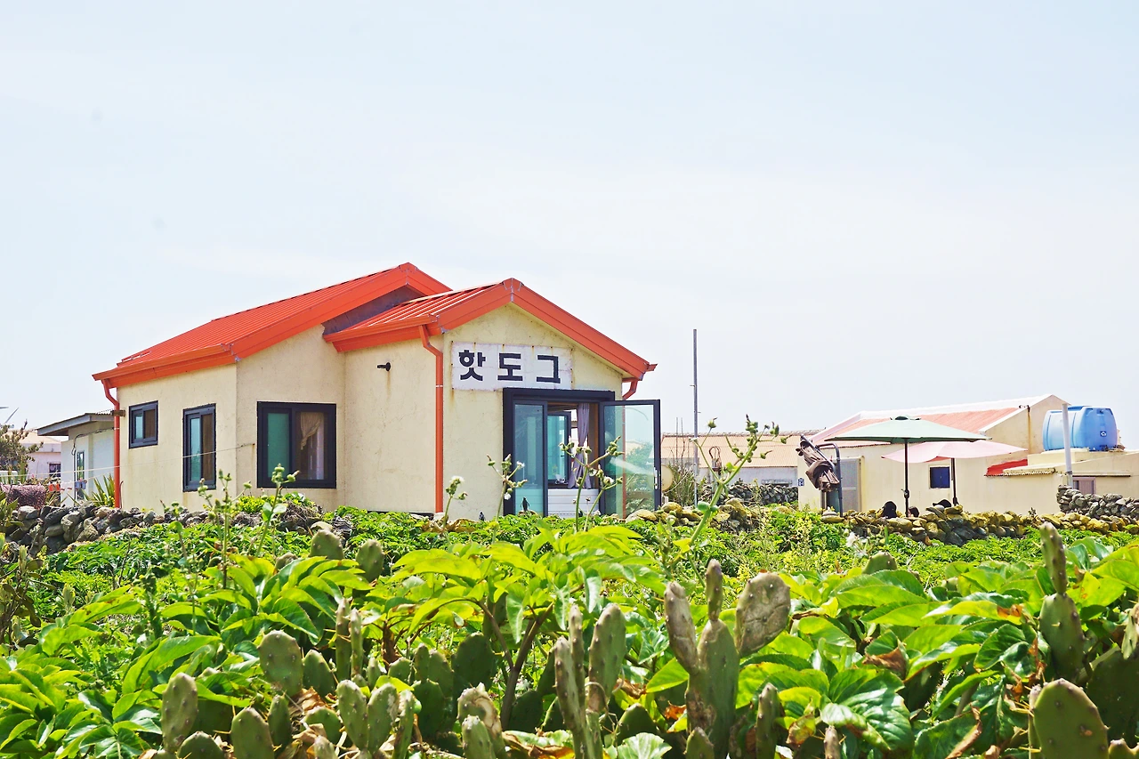 거기에 더해진 행복 하나. 가파도 핫도그가 내 손에 들어왔다. 사람들이 가파도의 명물이라길래. 초록 들판 위에 빨간 지붕 그리고 '핫도그'라고 적혀 있는 그 간판이 너무나 정직했기에. 그냥 지나칠 수만은 없었다고 그에게 두런두런 핫도그를 먹어야 하는 이유를 늘어놓았다. 동시에, 자전거를 타고 해안도로만 돌고 있었다면 골목에 있는 이 가게를 과연 발견할 수 있었을까? 우린 역시 걸어야 했던 거야. 혹시나 자전거를 일찍 반납한 것에 아쉬움이 남을까 하는 마음에 운명론까지 들먹이며 우리의 선택이 잘한 것임을 그에게 자꾸만 새뇌시켰다. 비로소 핫도그 한 입. 입안 가득 베어 물자, 세상은 한층 더 아름다워졌고 내 마음은 더욱 평온해졌다.