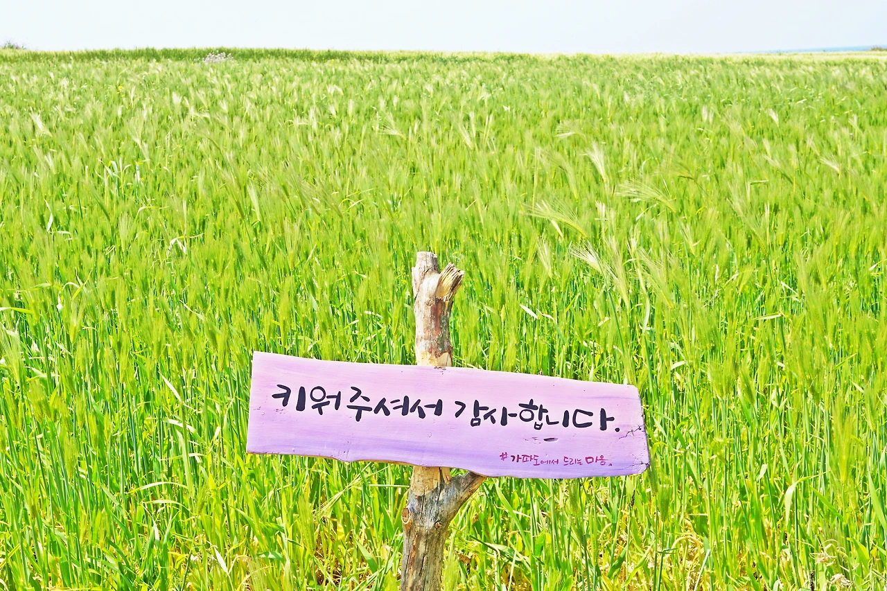 매년 3월 초부터 5월 초순, 봄이 되면 우리나라 최남단인 가파도에서 제일 먼저, 가장 높게 자라는 청보리. (제주 향토 품종인 '향맥'으로 다른 지역 보리보다 2배 이상 높게 자란다) 끝이 보이지 않는 바다가 바람에 의해 새하얀 파도를 만들어내듯, 가파도의 드넓은 청보리는 살랑이는 바람에 초록의 물결을 만들어낸다. 푸른 청보리가 선선한 바람에 하늘하늘 날리고, 따뜻한 햇볕에 끝이 반짝 빛나며 실크를 손으로 쓸어내리듯 그려지는 부드러운 표면. 세차게 바람이 불어올 때면 청보리의 가냘픈 몸은 바람에 따라 이리저리 몸을 흔들고, 빼곡하게 심긴 탓에 자기들끼리 부딪히며 사라락 사라락 기분 좋은 소리를 들려준다. 드넓은 밭에 수많은 청보리들이 함께 만들어내는 하모니는 모든 말과 움직임을 멈춘 채 가만히 귀를 기울이게 만드는 힘이 있다. 이보다 좋은 ASMR이 있을까, 각자 조금씩의 거리를 두고 떨어져서 각자의 핸드폰을 꺼내 청보리의 소리와 그곳의 푸른 물결을 영상으로 담아보기도 했다.