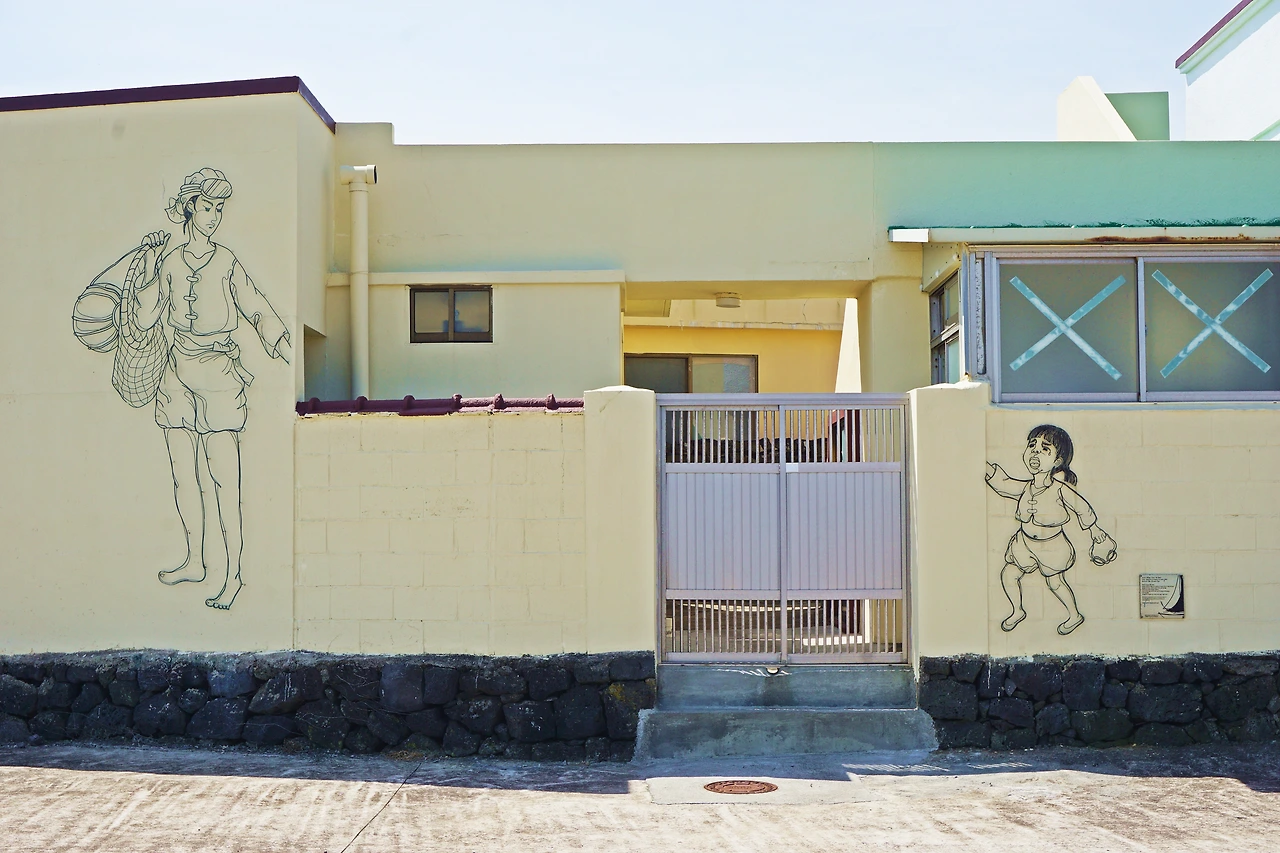 김녕리의 꽃 피우는 길은 국내에서 볼 수 없었던 금속 소재의 벽화 예술을 통해 김녕의 가치를 드러내고자 기획한 금속 벽화 프로젝트다. 아름다운 해변, 풍부한 바다자원에 역사적 존귀함을 가진 해녀마을까지. 김녕이 가진 풍부한 자원을 앞으로의 세대들에게 보존된 유산으로 남기고자 시작했다는 고장 난 길. 제주와 김녕리 그리고 해녀에 대한 이야기들이 여러 작가님들을 통해 예술작품으로 만들어져 이곳, 김녕리를 지붕 없는 미술관으로 만들어놓았다. 스쳐 지나가는 마을에서 꼭 가봐야 하는 마을로 만들겠다는 김녕리 사람들의 애정 어린 마음이 굽이굽이 이어지는 골목의 곳곳에서 반짝이며, 나아가려는 우리의 발걸음을 자꾸만 잡아끌었다. 육지에서도 흔히 볼 수 없는 금속 벽화이기에 절로 시선이 끌리고 투박한 듯 섬세한 금속 공예가 고즈넉한 제주의 분위기와 찰떡같이 들어맞아 더 깊게 빠져들고야 만다.