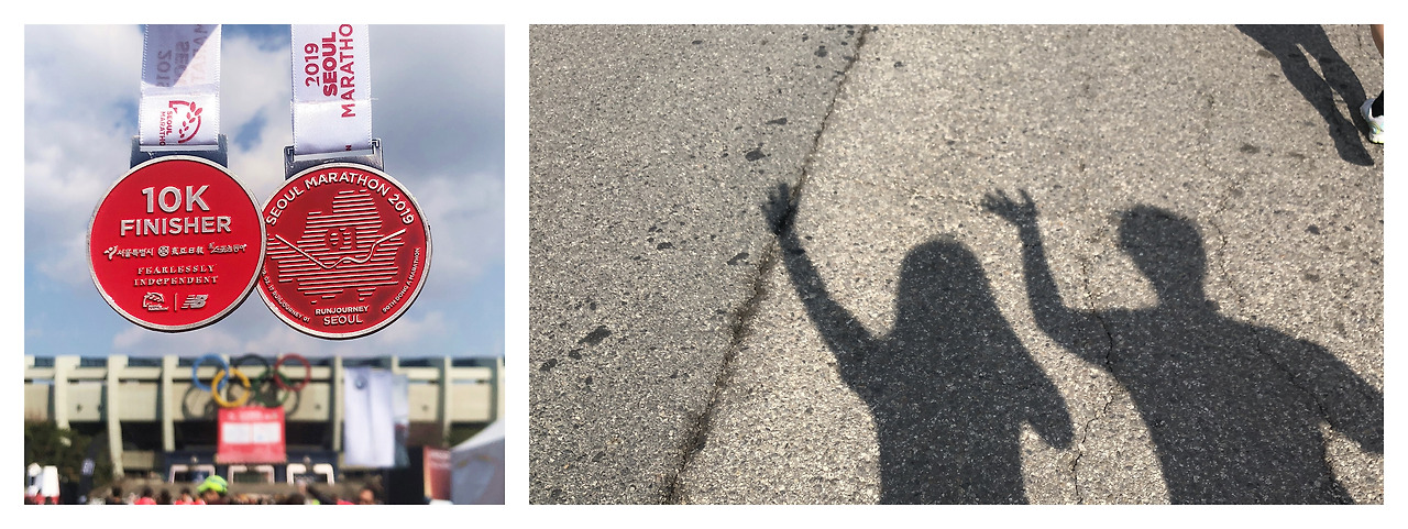 달리기는 그를 만나기 전부터 내가 빠져있던 운동이었다. 우리가 만남을 시작하면서부터 그도 함께 달리기 시작해 지금은 여행에서 가벼운 조깅을 같이 하는 것 외에도 이따금씩 마라톤 대회에서 서로의 페이스 메이커가 되어 동반주를 하기도 한다. 처음으로 함께 참가했던 마라톤 대회는 '2018 마이런 부산'이다. 광안대교 위를 달릴 수 있는 특별한 기회, 마이런 부산 마라톤 대회에서는 기록에 연연하지 않고 그 순간을 즐기며 관광하듯 재밌게 달렸다. 2019년 3월, 1박 2일로 계획했던 고성 여행의 첫 일정은 '2019 서울 마라톤' 10km 코스 달리기였다. 이른 주말 아침, 여행 전에 가볍게 조깅하는 기분으로 달리자며 참가한 마라톤 대회에서 동반주 최고 기록을 경신하고 땀에 흠뻑 젖은 채 고성 여행을 시작했다. 잊을 수 없는 우리만의 특별한 추억들이다.