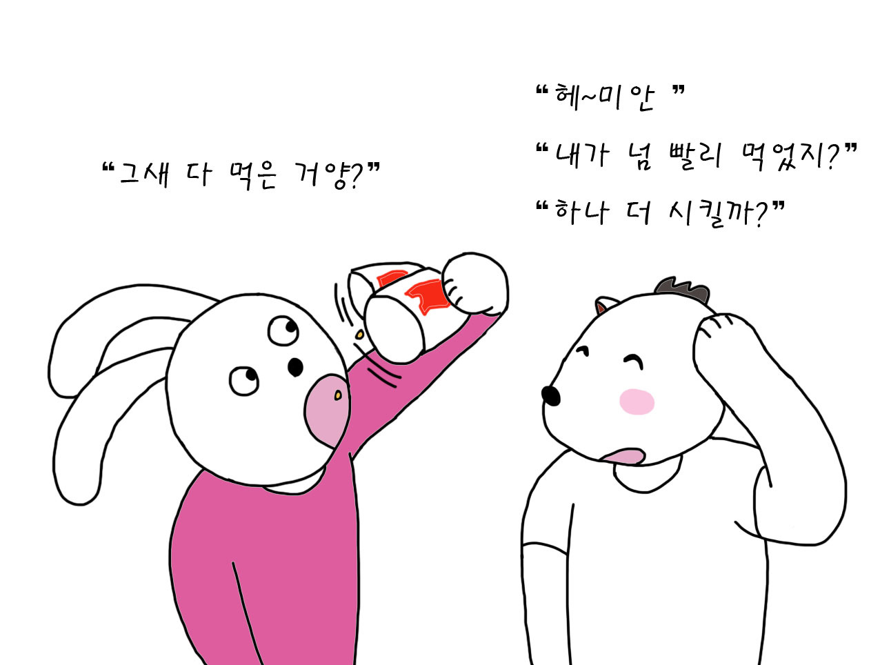남표니는 빨리 먹는 편이다. 난 천천히 먹는 편인데.