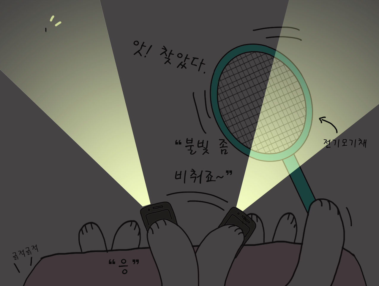 불 켜면 너무 눈부시니까 우린 핸드폰 라이트로 찾는다.