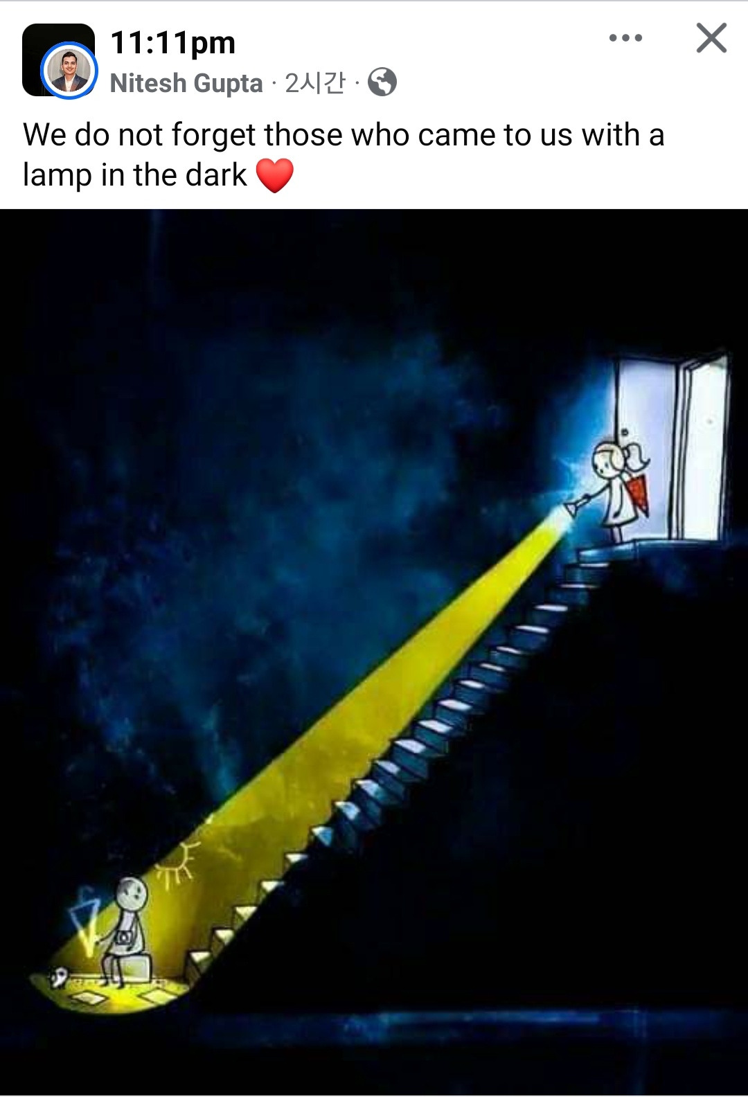 어둠 속에서 램프를 들고