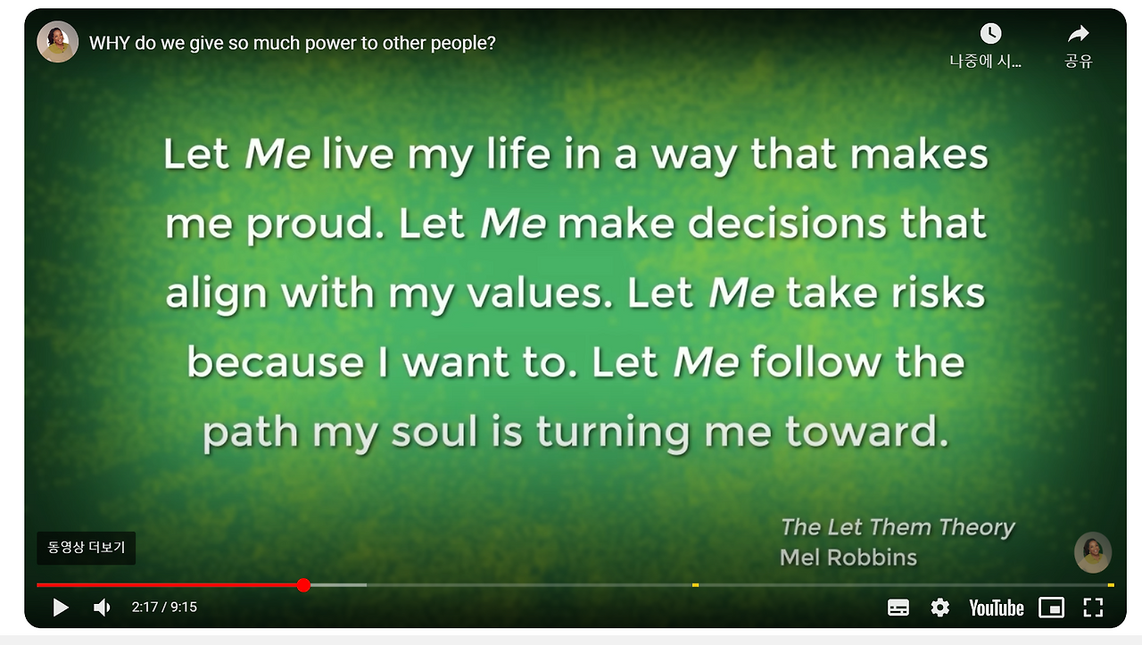 머리로는 알지만 행동으로까지 가는 사람들이 적다는 현실을 인정하고, 어떻게 하면 사람들이 결국 움직이게 할지 인사이트를 나누는 멜 로빈스 Mel Robbins 님이 2024년 12월 24년에 신간 <Let Them Theory>를 세상에 내놓았습니다.