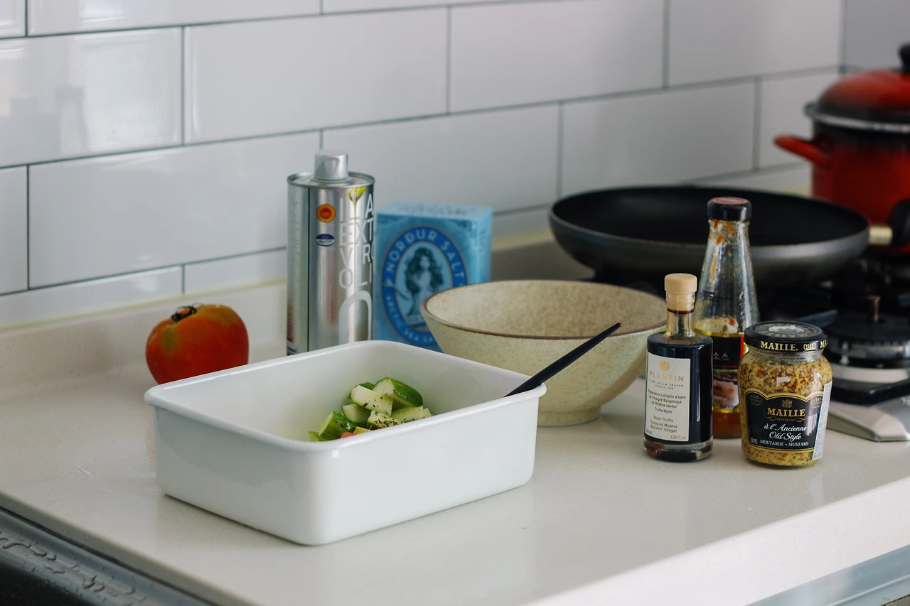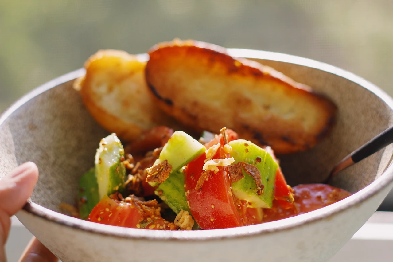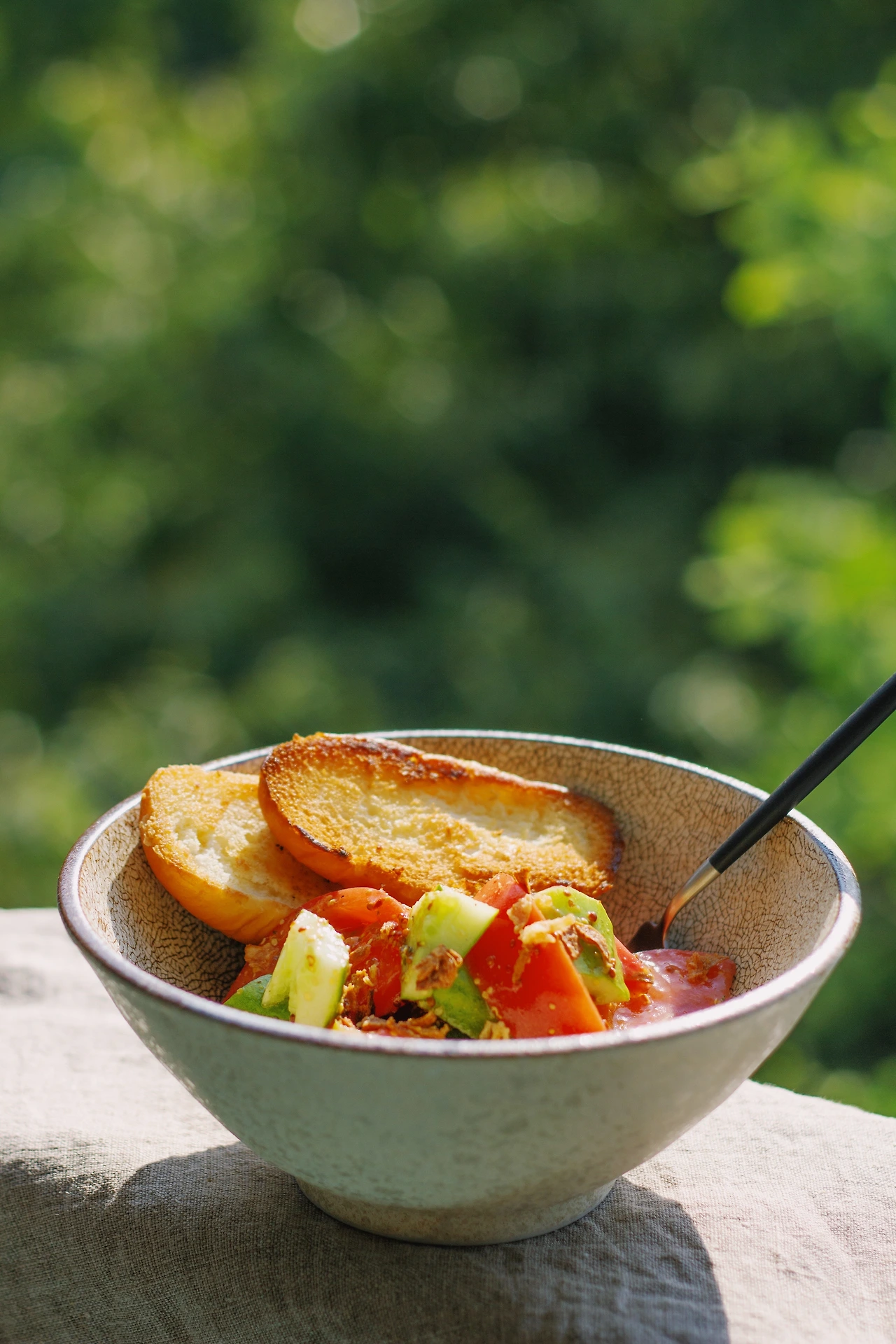결국 한 주가 지나버렸다. 일찍이 사둔 오이, 물러가는 토마토의 골든타임이 얼마 남지 않았다. 토요일 점심은 미루고 미루다 쌓여버린 식재료들을 한데 모아 준비한다. 이번주는 토마토와 오이다. 무얼 해 먹을까 생각하다가 샐러드로 마음을 굳혔다. 씻고 자르고, 한데 뒤섞어버리면 끝나는. 그렇다고 만만히 본다거나 하찮게 여기는 건 절대 아니다. 한데 뒤섞여 엉망이 되는 듯 보여도 저마다 규칙이 있고, 한계가 없는 장르이기 때문이다. 섞이는 재료와 곁들이는 빵과 치즈, 그리고 조리 방법에 따라 전혀 다른 요리가 된다. 푸실리나 펜네를 삶아 넣으면 냉파스타, 곡물을 넣으면 샐러드 보울, 빵에 얹으면 샌드위치나 카나페가 된다.