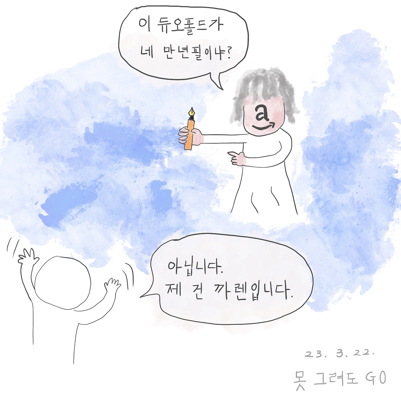 그도 그럴 것이 내가 아마존에서 주문한 만년필은 워터맨 까렌(국내 정가 35만 원)인데 택배 안내 문자에는 내용물이 파커 듀오폴드 센테니얼(국내 정가 60만 원)이라고 적혀 있었기 때문이다.