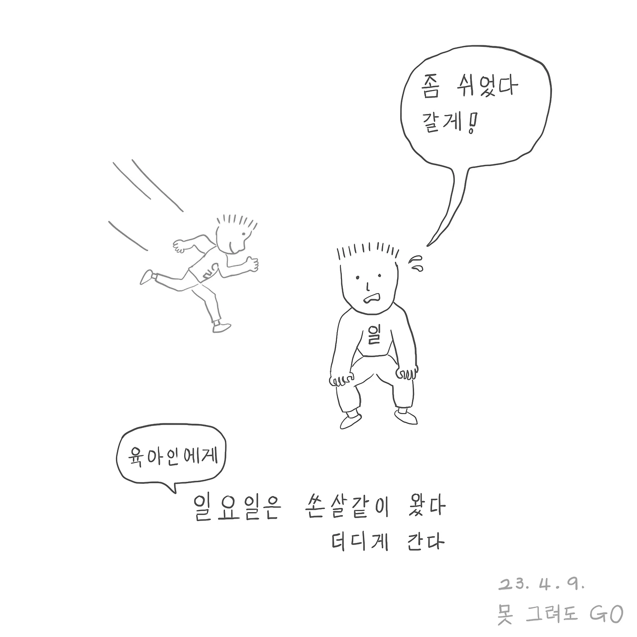 지난주 일요일에 산책하고 팝콘 사 먹었다고 그림일기를 쓴 게 정말 엊그제 같은데 또 일요일이다. 평일이고 주말이고 정신이 없으니까 참 빨리도 간다.