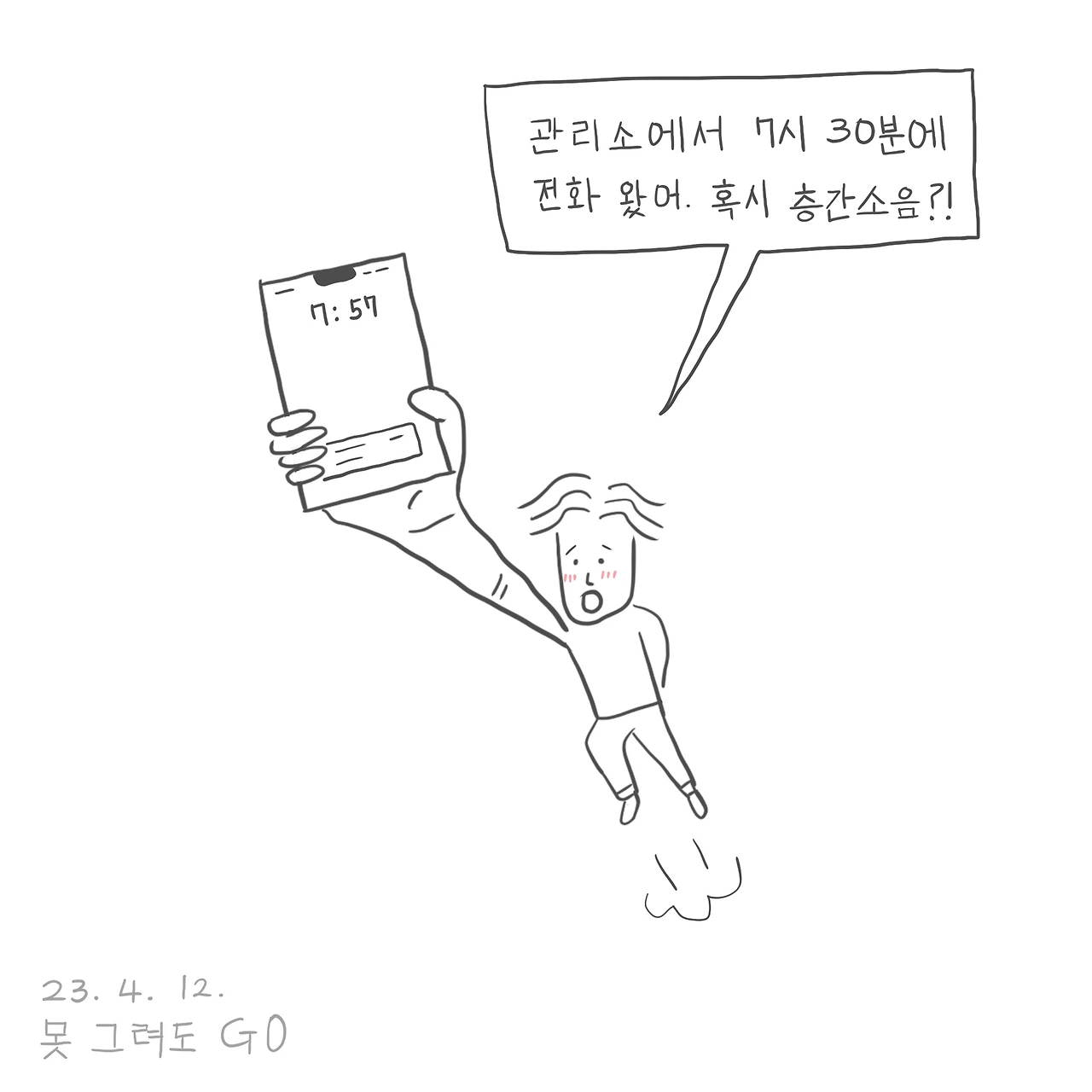 그러던 차에 오늘 아침에 폰을 보니까 7시 30분에 관리소에서 전화가 와 있다. 그 아침에 전화할 일은 층간소음 밖에 없다고, 드디어 올 것이 왔다고 생각하며 관리소에 전화를 걸었다. 관리소 직원 왈,