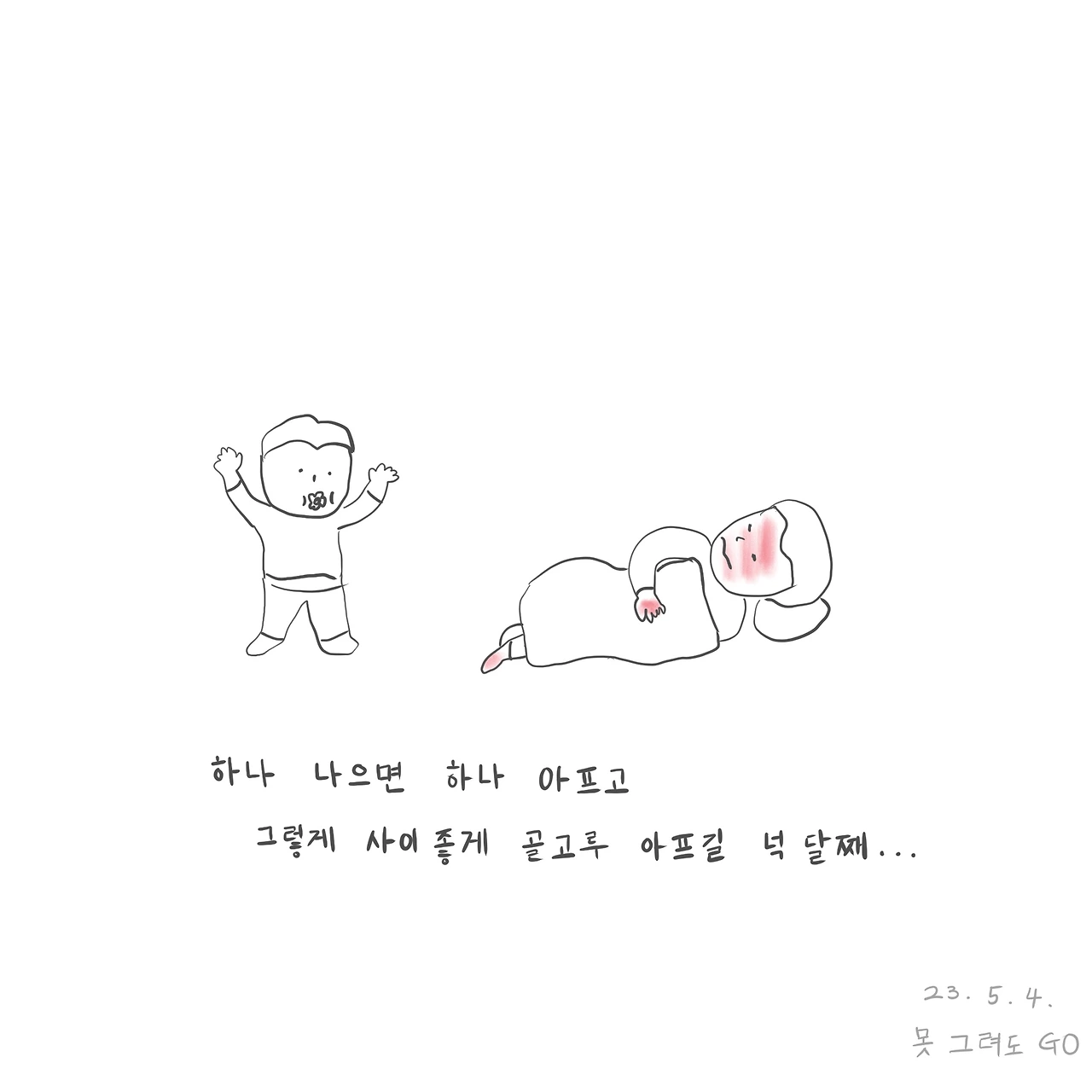 둘째가 주말부터 열이 나서 등원을 못 하더니 오늘은 첫째가 유치원에서 열이 나서 조퇴했다. 1월부터 장염에 독감에 둘이서 같이 아프던가 하나씩 아프던가 하면서 벌써 넉 달째 꼬리에 꼬리를 물고 병치레 중이다. 내일부터 어린이날 연휴인데 애 아파서 어디 가지도 못하고 집에서 사흘 내내 부대낄 생각 하니 환장하겠네.