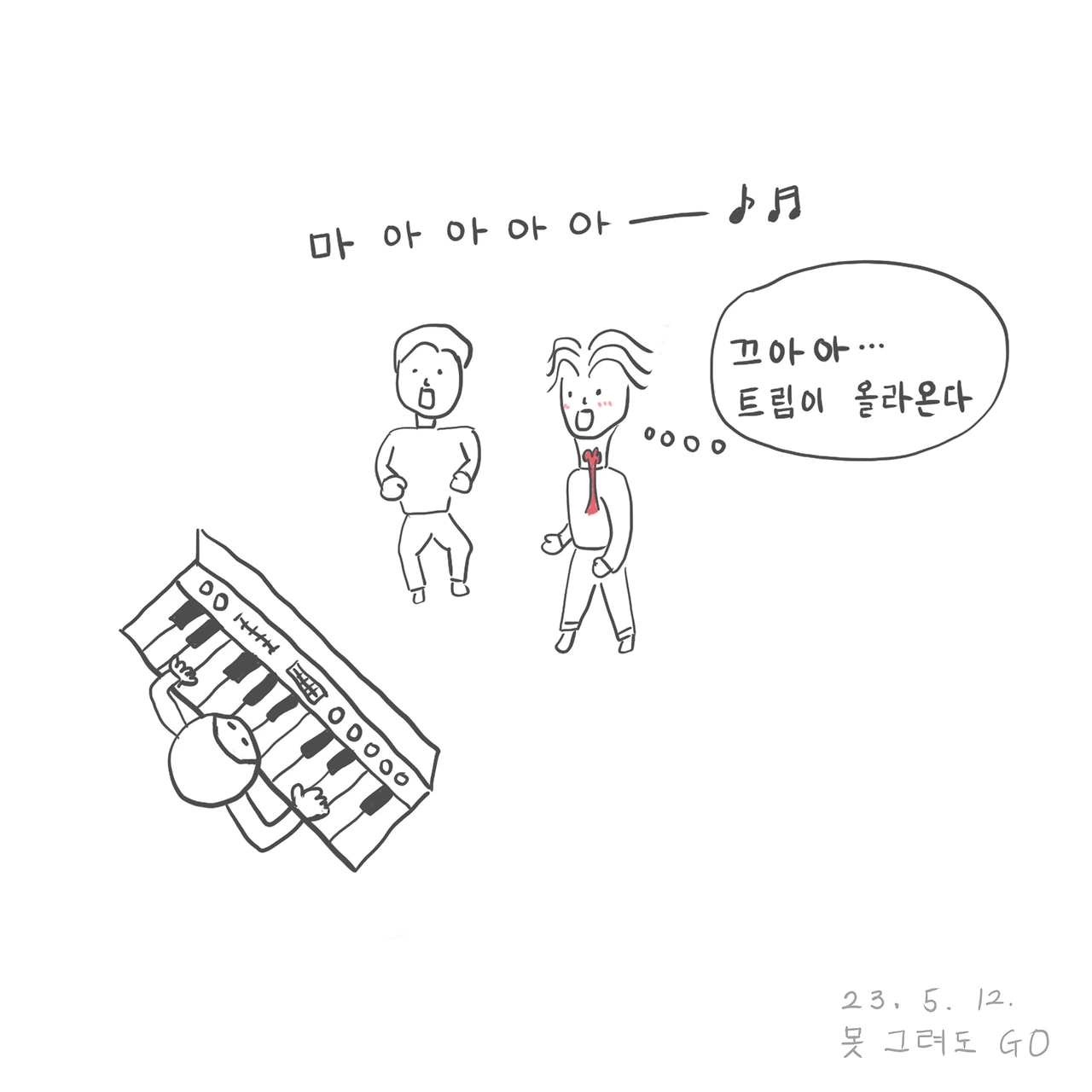 선생님 앞에 가서 발성 연습하는데 이런 자꾸만 트림이 올라오는 거다. 선생님과 거리는 2미터, 옆사람과는 50센티미터. 모두 사정거리 안이었다.