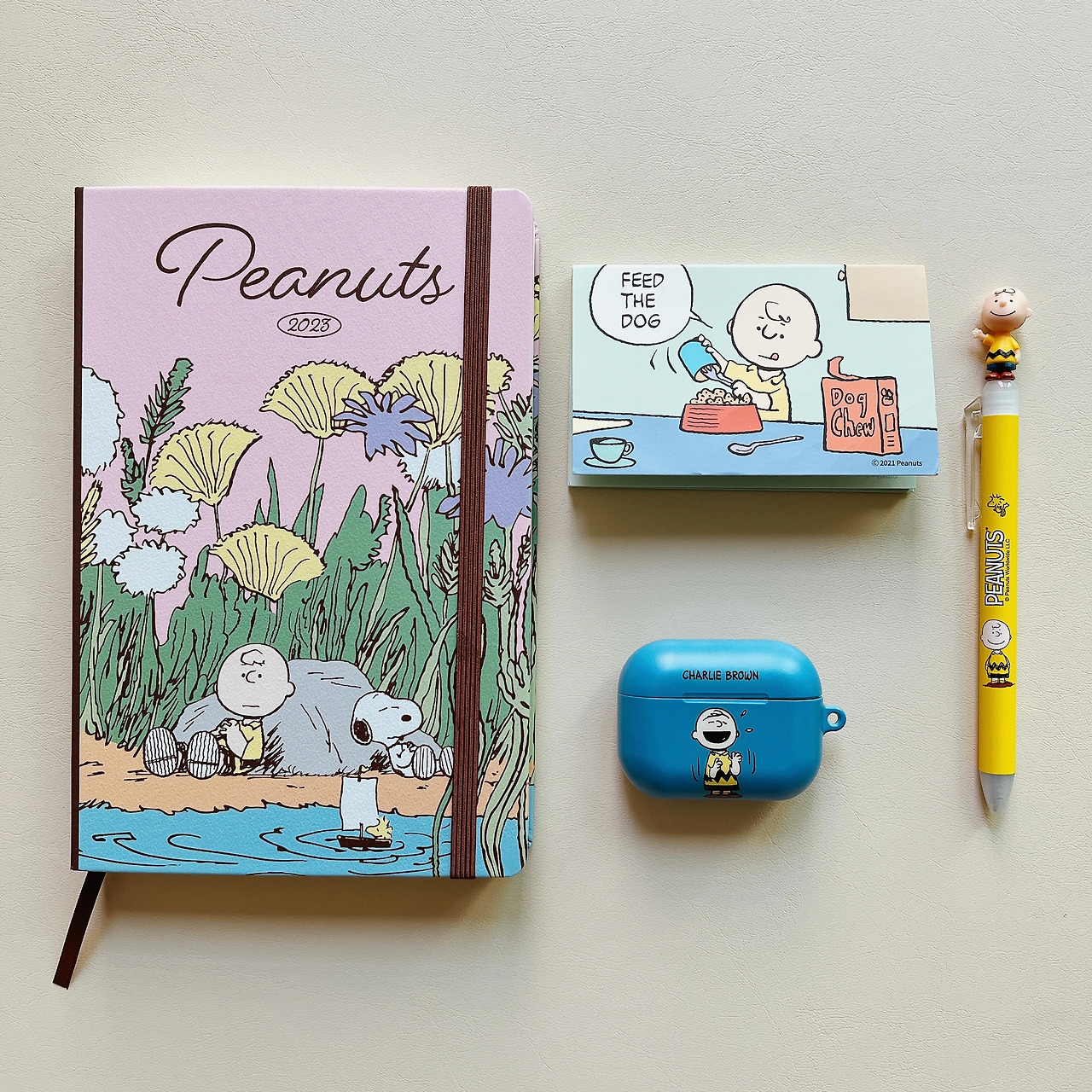 ……라는 소리를 들을까 봐 섣불리 못 입고 못 사고 못 쓰는 게 점점 늘어난다. 예를 들면 나의 피너츠 다이어리. 찰리 브라운과 스누피가 바위에 기대서 쉬고 우드스톡이 작은 돛단배를 타고 물 위를 떠다니는 풍경이 차분한 색조로 표지를 장식하는 다이어리다. 알라딘에서 2022년 말에 판매한 제품으로 정가는 4,000원. 단, 50,000원 이상 주문 시에만 구입 가능. 순전히 이 다이어리가 갖고 싶어서 5만 원을 꽉꽉 채워 주문했다.