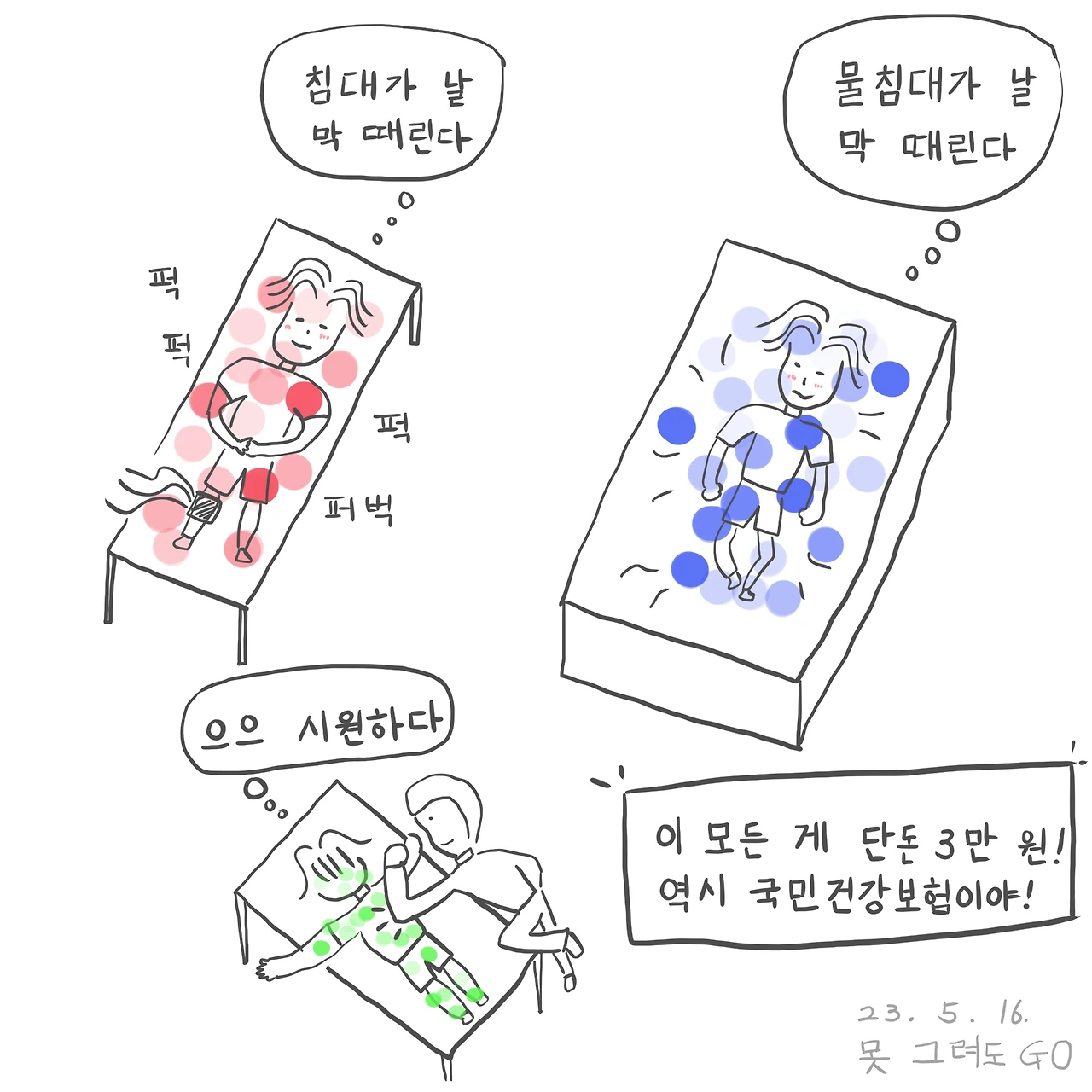 그렇게 40분간 온몸을 두드려 맞았는데 병원비는 단돈 3만 원 밖에 안 나왔다. 역시 국민건강보험이야!