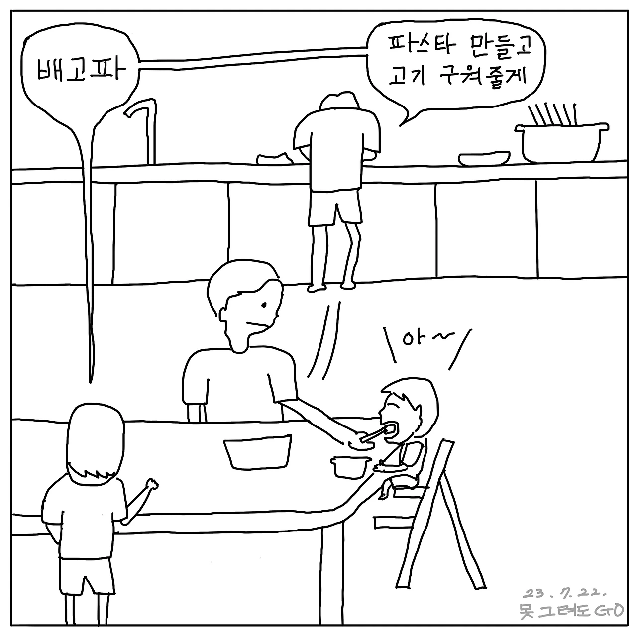 아내가 아파서 뻗어 있는 동안 둘째 수박 먹이면서 파스타 만들었다. 별것 아닌 것 같아도 실제로 해보면 주부 3단쯤 돼야 구사할 수 있는 고급 기술이다. 내일은 또 뭘 해 먹이나. 이것은 주부 3단이 돼도 풀리지 않는 숙제다.