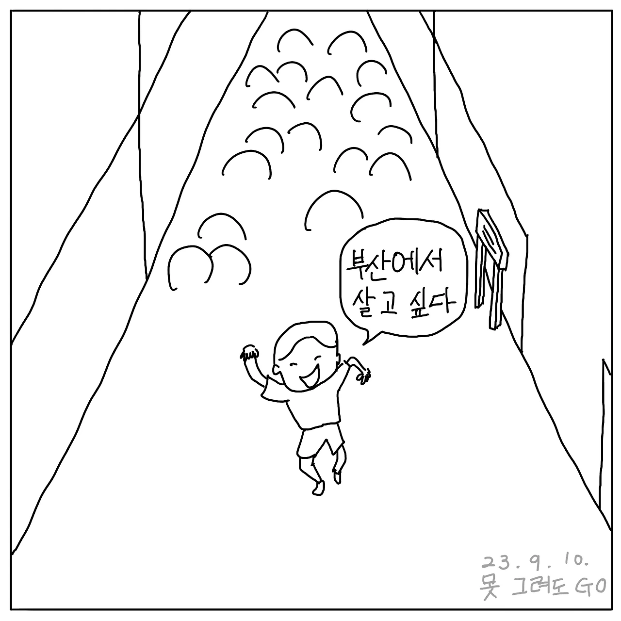 오늘 공연도 보고 지하철도 타고 백화점에서 차 구경도 실컷 한 첫째는 막춤을 춰대며 부산에서 살고 싶단다. 둘째는 부산에 진입하는 순간부터 난생처음 보는 대도시 풍경에 넋을 잃었다.