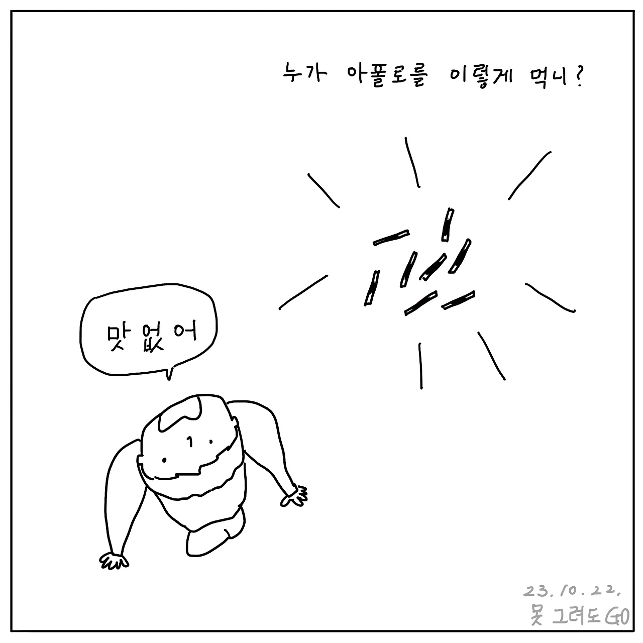 오후에 아내와 둘째는 자고 첫째가 텔레비전을 보는 동안 브런치북 공모전 원고를 마감했다. 그러고서 보니 첫째가 아폴로 한 통을 다 먹긴 먹었는데 바닥에 널브러진 빨대들을 보니 맙소사, 양끝만 빨아먹고 중간에는 내용물이 그대로 남아 있는 것 아닌가! 이 자식이 배가 불러갖고! 아빠 때는 아폴로가 얼마나 귀한 간식이었는데! 그래서 남은 거 내가 다 긁어 먹었다. 다들 알 거야. 윗니 아랫니 사이에 끼우고 쭉 당기면 쏙 빠지는 거.