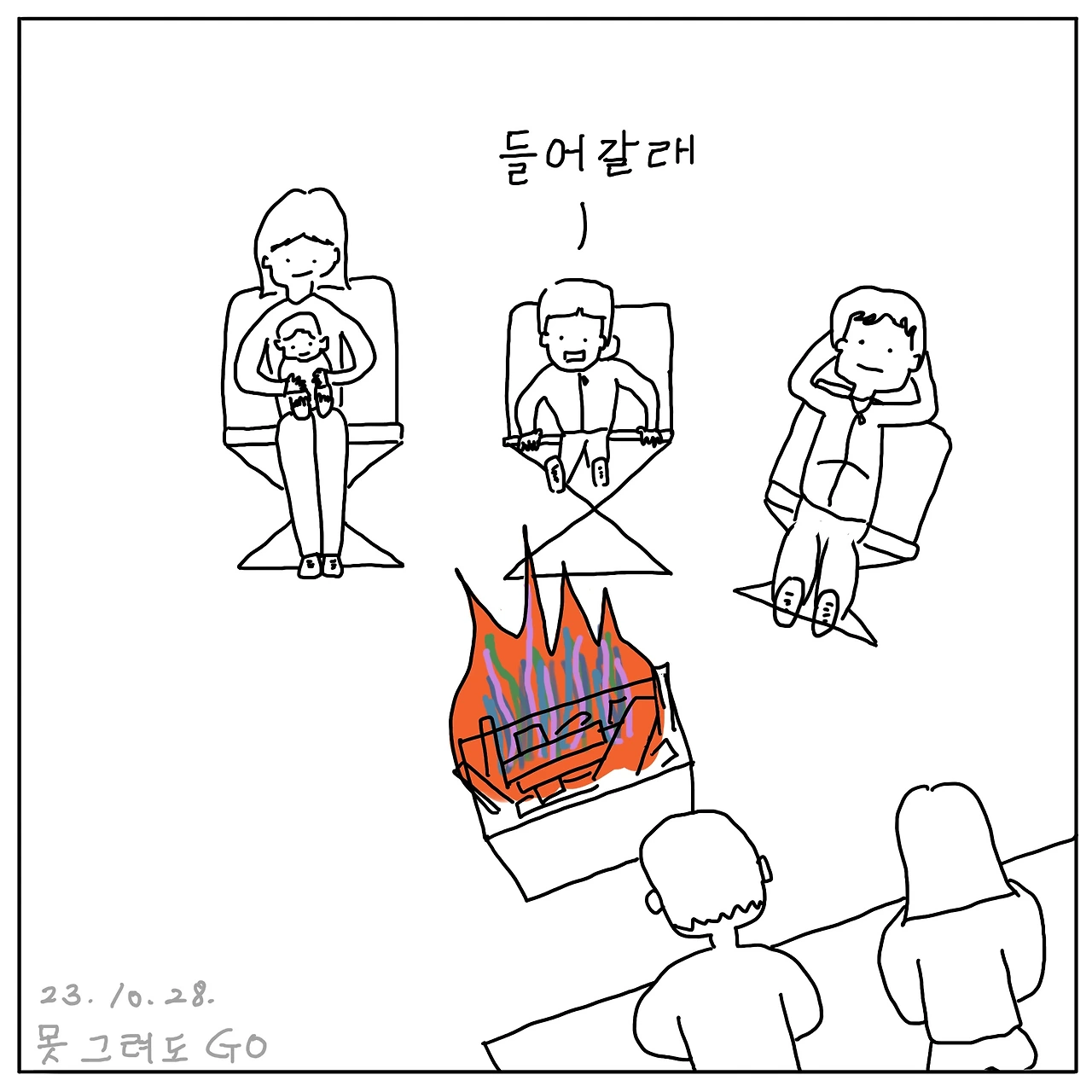이따 불 피운다니까 언제 하냐고 보채던 첫째는 정작 불 피웠더니 시큰둥하다가 금방 텐트로 들어갔다. 둘째는 잘 놀아서 놔뒀더니 나중에 보니까 바지에 똥칠을 똥칠을 해놔서... 어휴 그 뒷일은 생각하기도 싫다.