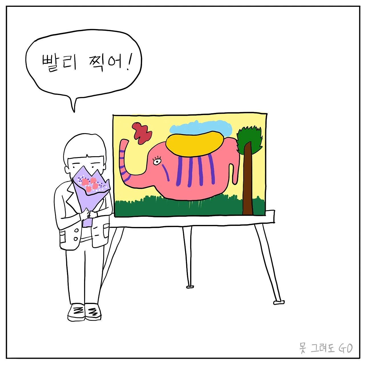 학원은 절대 안 다닌다는 첫째를 어찌저찌 친구랑 엮고 꼬셔서 주 2회 미술학원에 보낸 지 반 년이 조금 못 됐다. 이번에 학원 옥상에서 전시회를 했는데 그야말로 충격을 받았다. 너무 잘 그려서.
