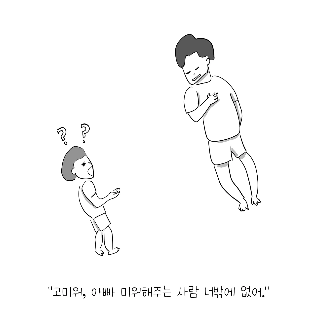 나: 고마워, 아빠 미워해주는 사람 세상에 너밖에 없어.