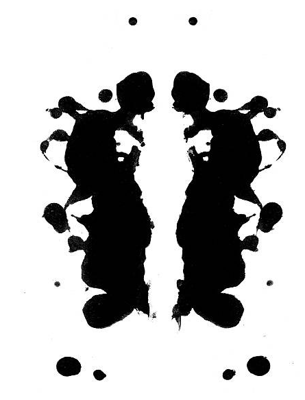 *다음은 대표적인 투사 검사인 로르샤흐 검사의 예시이다(*해당 카드는 검사의 오염을 막기 위해 실제검사에서 사용되는 카드가 아닌 잉크반점 검사의 이해를 돕기 위한 이미지임, *출처: 로샤검사, 특징).