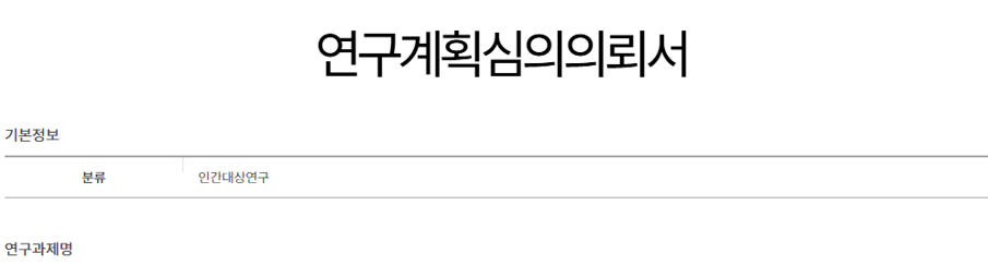 IRB 심의에 필요한 서류가 꽤나 많았지만(연구계획심의의뢰서, 연구상세요약서, 연구책임자 제출서류 등등등등) 어차피 논문을 작성하려면 연구계획서를 써야 했으므로 차분히 준비를 시작했다.