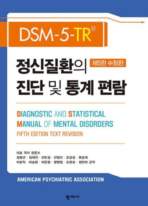 DSM-5-TR은 *정신질환의 종류와 진단기준, 주요 특징, 감별진단 등의 내용을 담고 있다.