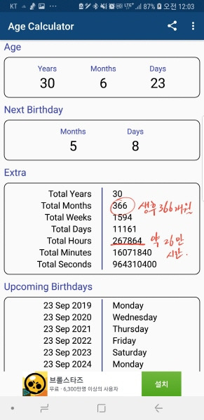 필자의 나이는 현재 만 30세 하고도 약 7개월을 향해 가고 있다. 그렇다면 태어나서 나는 몇 시간이나 살았을까? 그리고 거의 대부분의 시간을 경기도, 특히 경기 서남부권에서 계속 살았던 내가 경기도인이었던 시간은 대략 얼마나 될까? 그에 대한 답변을 위해서는 일단 내가 살아온 시간이 얼마나 되는지부터 계산해 보아야 하기 때문에 살아온 시간을 계산해주는 어플을 하나 다운로드하여 그 시간을 계산해 보았다.