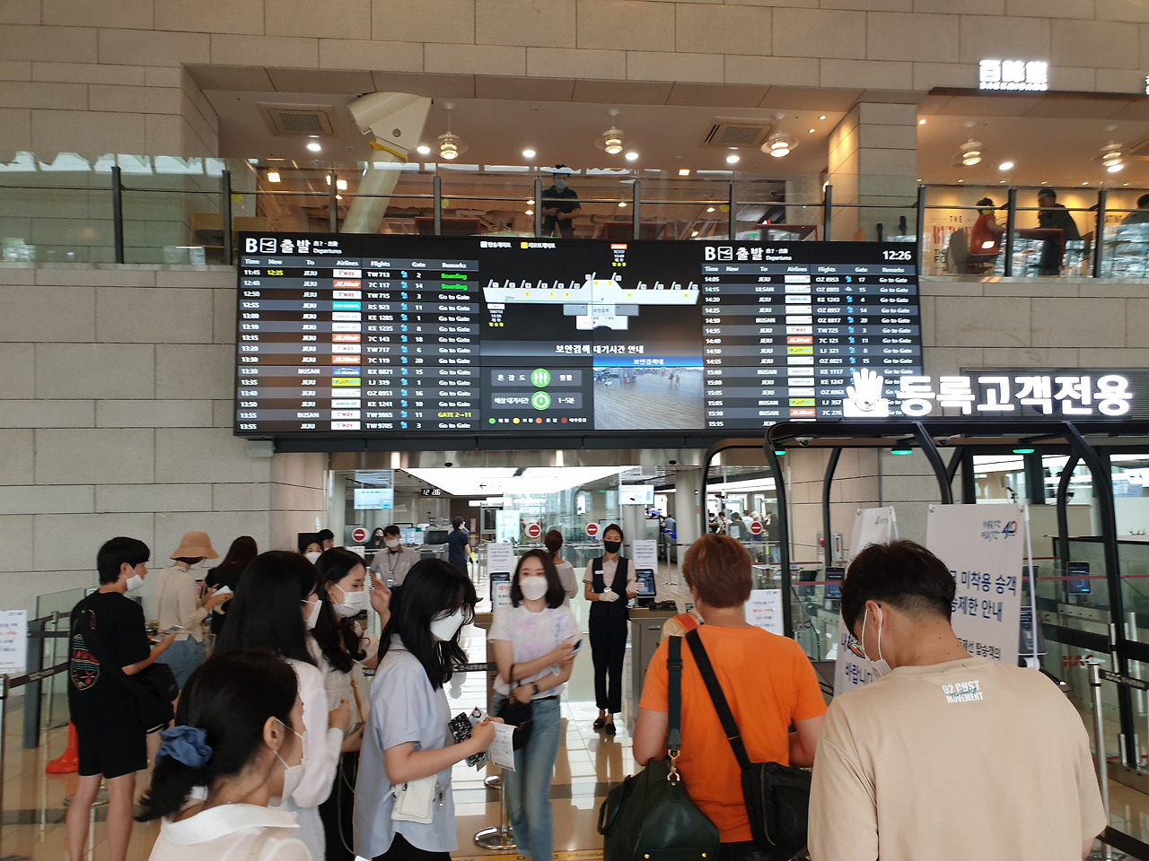 배낭 말고는 짐을 가져오지 않았기 때문에 셀프체크인으로 티켓을 발권하고는 그대로 탑승구로 향했다. 티켓과 신분증을 확인하는 검색대 입구의 공항직원은 마스크를 잠시 내려줄 것을 요청했다. 코로나19가 바꿔놓은 일상의 흔적. 이어지는 검색대에는 사람이 별로 없어 기다림 없이 짐을 풀고 통과했다. 검색대에서는 큰 전자기기는 따로 빼 달라고 요청을 하기 때문에 빵빵한 가방에서 노트북을 꺼내 빼느라 조금 귀찮기는 했다.