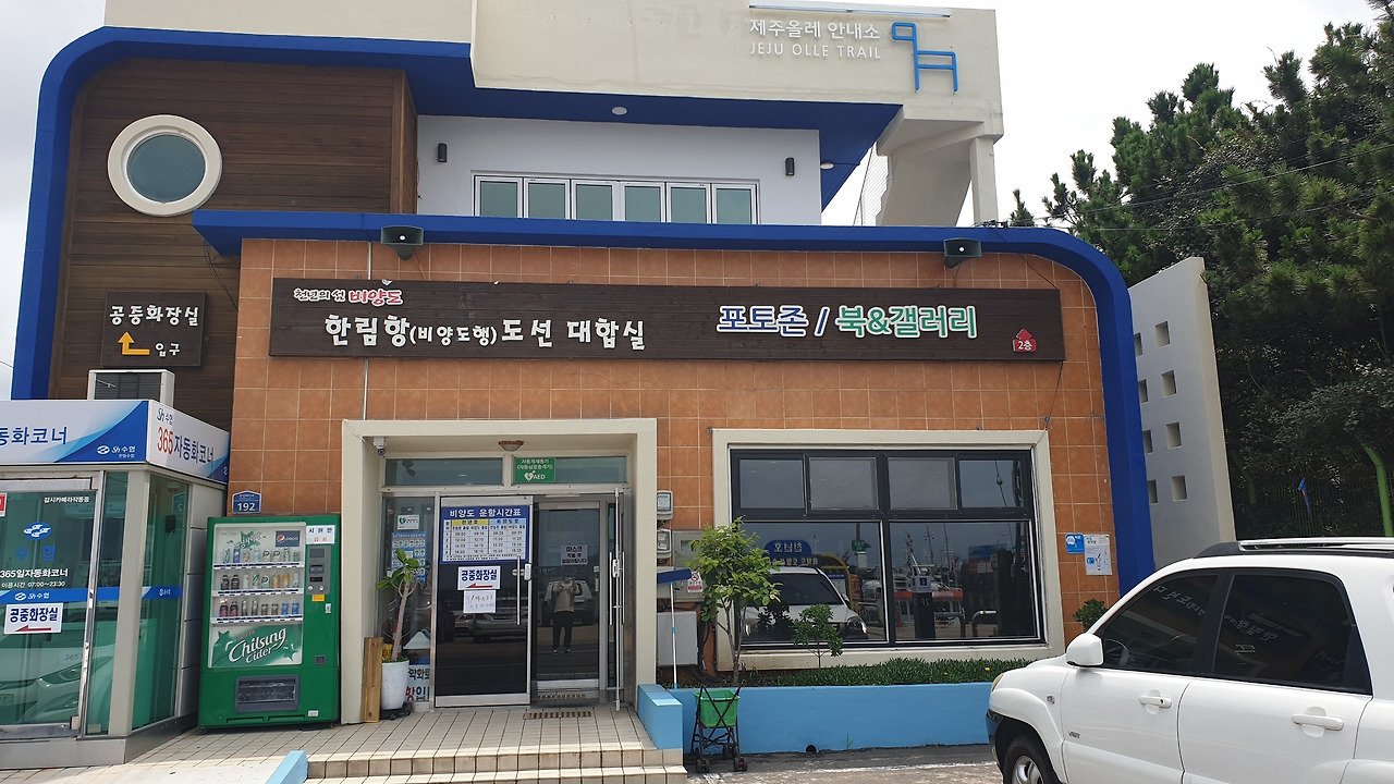 걸었던 길을 다시 거슬러 5분여를 가니 처음 비양도가 보였던 지점에 다시 도착했다. 그리고 그 방향으로 조금 더 걸으니 한림항 도선 대합실이 보였다. 대합실에 도착한 시간은 11시 10분경. 파출소 비슷한 느낌의 도선 대합실로 들어가니 정면에 티켓팅 창구가 보였다. 다행히 대합실 안은 에어컨 덕에 시원한 공기로 가득 차 있었다. 나는 그대로 창구 쪽으로 다가가 직원에게 비양도에 들어가는 왕복표 하나를 달라고 말했다.