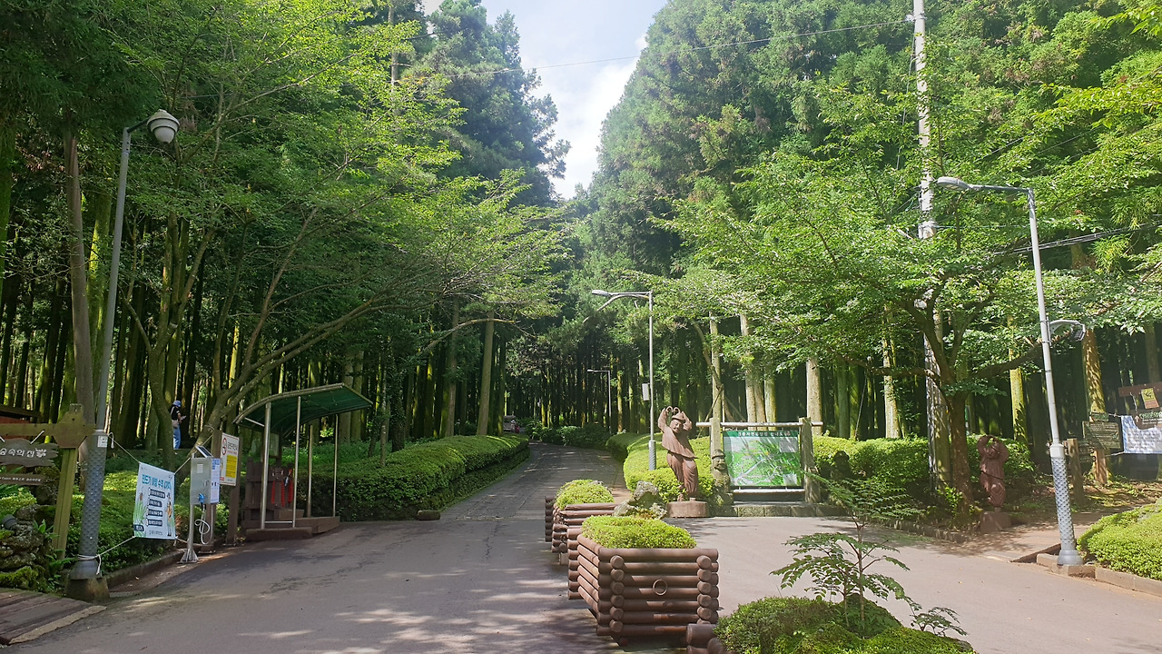 제주절물자연휴양림은 전체 면적이 300만㎡에 이르는 거대한 숲이었다. 매표소 주변은 여러 가지 인간이 조형한 흔적들이 있어 문명의 냄새가 났지만 오름 입구를 지나 숲길로 돌입할수록 주변은 더 새파래졌다. 그 야생으로서의 깊이는 보행객을 자꾸만 성가시게 하는 날벌레들의 존재로 점점 더 입증이 되어갔다. 가뜩이나 마스크를 차고 걷느라 숨이 더 차오르는 와중이었던지라 불청객 같은 날벌레의 동행은 불쾌감을 높였다.