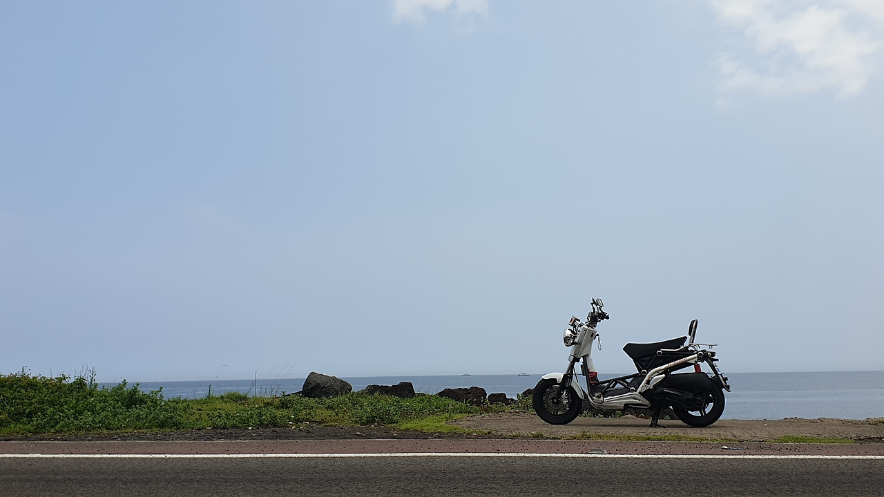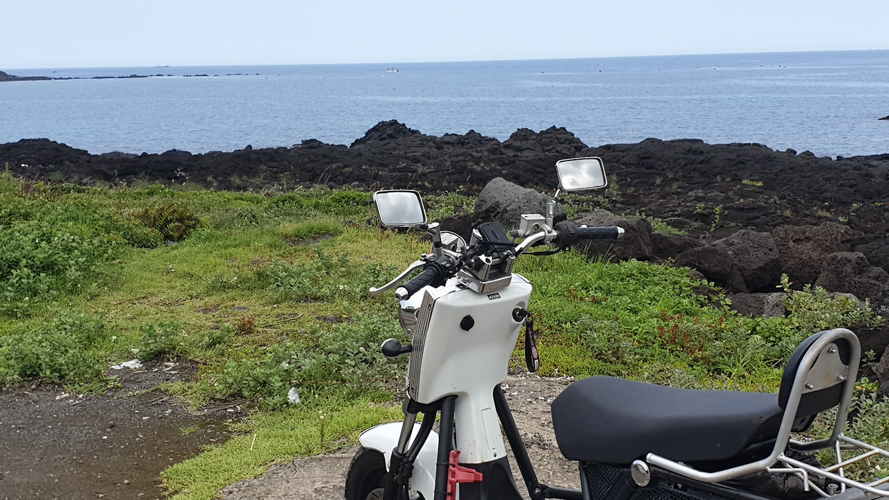 제주도를 커다란 원으로 봤을 때 전체 경로의 앞선 절반은 한라산이라는 원의 중심 부근에서 해안가로 향해가는 여정이었고, 나머지 절반은 그 외곽선을 따라 김녕해수욕장이라는 중간 목적지까지 달리는 과정이었다. 고지대에서 저지대로 내려오는 전반부는 숲을 가로지르는 직선의 도로를 따라 제주를 뚫고 나가는 듯한 시원한 맛이 있었고, 제주의 외형을 그대로 읽는 듯한 후반부는 굽이굽이 이어지는 해안 마을의 작은 길들을 헤쳐나가는 아기자기한 맛이 있었다. 양쪽의 경우 모두, 스쿠터 운전자를 다급하게 만드는 요소가 별달리 없어 이전과는 다르게 그 길 위에서 스쿠터 주행의 여유를 물씬 느낄 수 있는 시간이었다. 스쿠터를 대여할 때 예상했던 여행의 그림은 반납하는 날이 돼서야 현실로 펼쳐졌다.