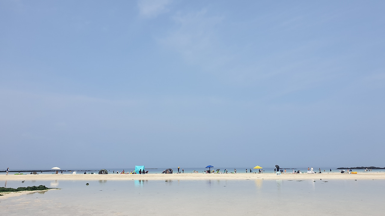 남들처럼 자주 인스타그램을 하는 편은 아니지만 세상과 너무 동떨어지는 기분이 들 때 즈음에는 사진을 올리는 편이다. 그마저도 조금씩 업로드 주기가 길어지고 있지만 여행 정도로 의미가 있는 사건은 기록으로써라도 사진을 올려둘 필요가 있다고 생각하여 한 카페에 앉아 지난 사진들을 올렸다. 김녕해수욕장을 거쳐 숙소 쪽으로 향하는 사이 점심식사를 하기 위해 잠시 들른 함덕 해수욕장이 눈 앞에 보이는 여느 해변 카페의 2층 자리였다.