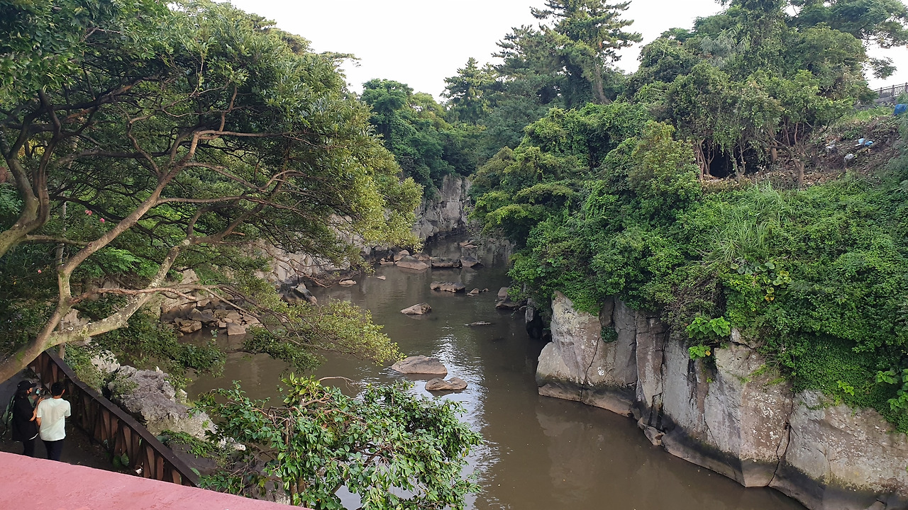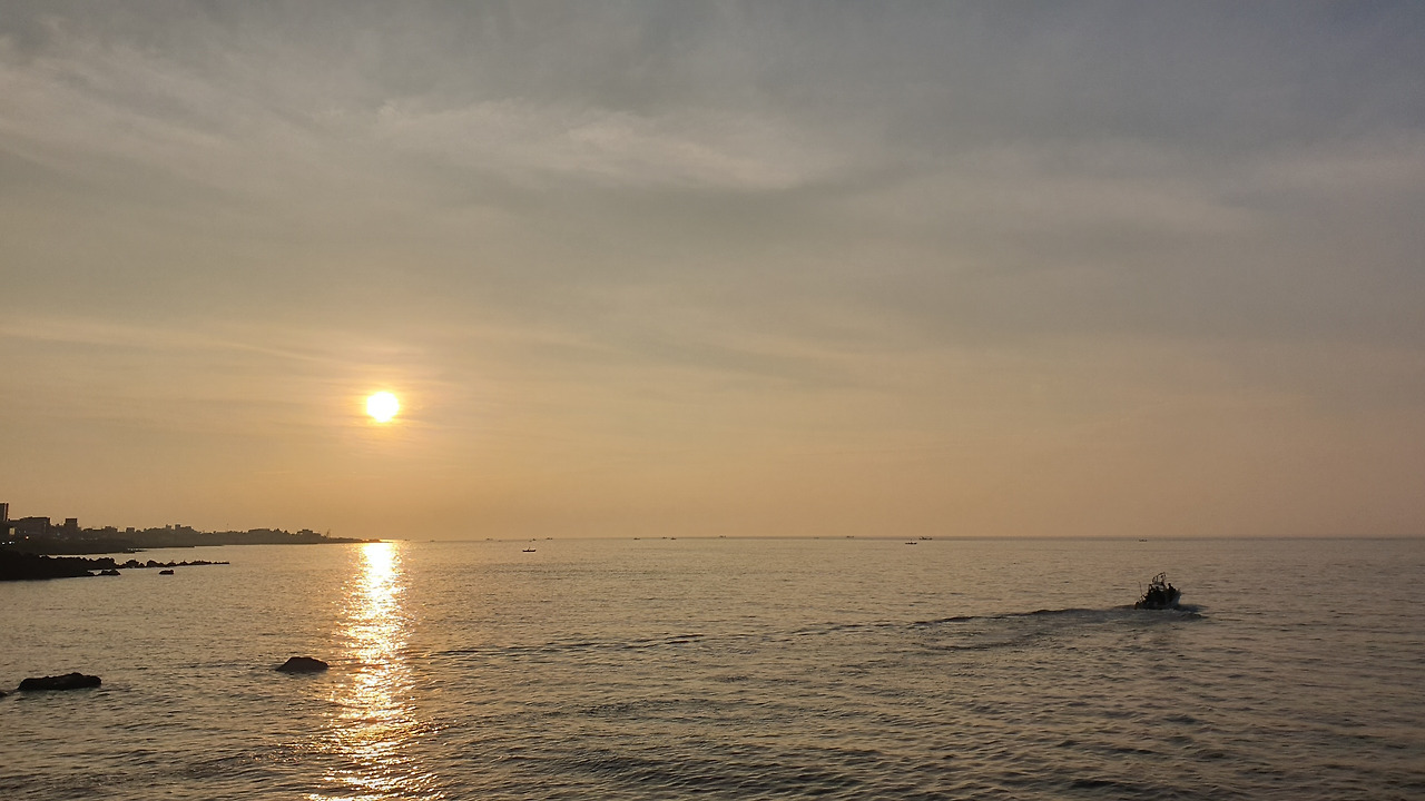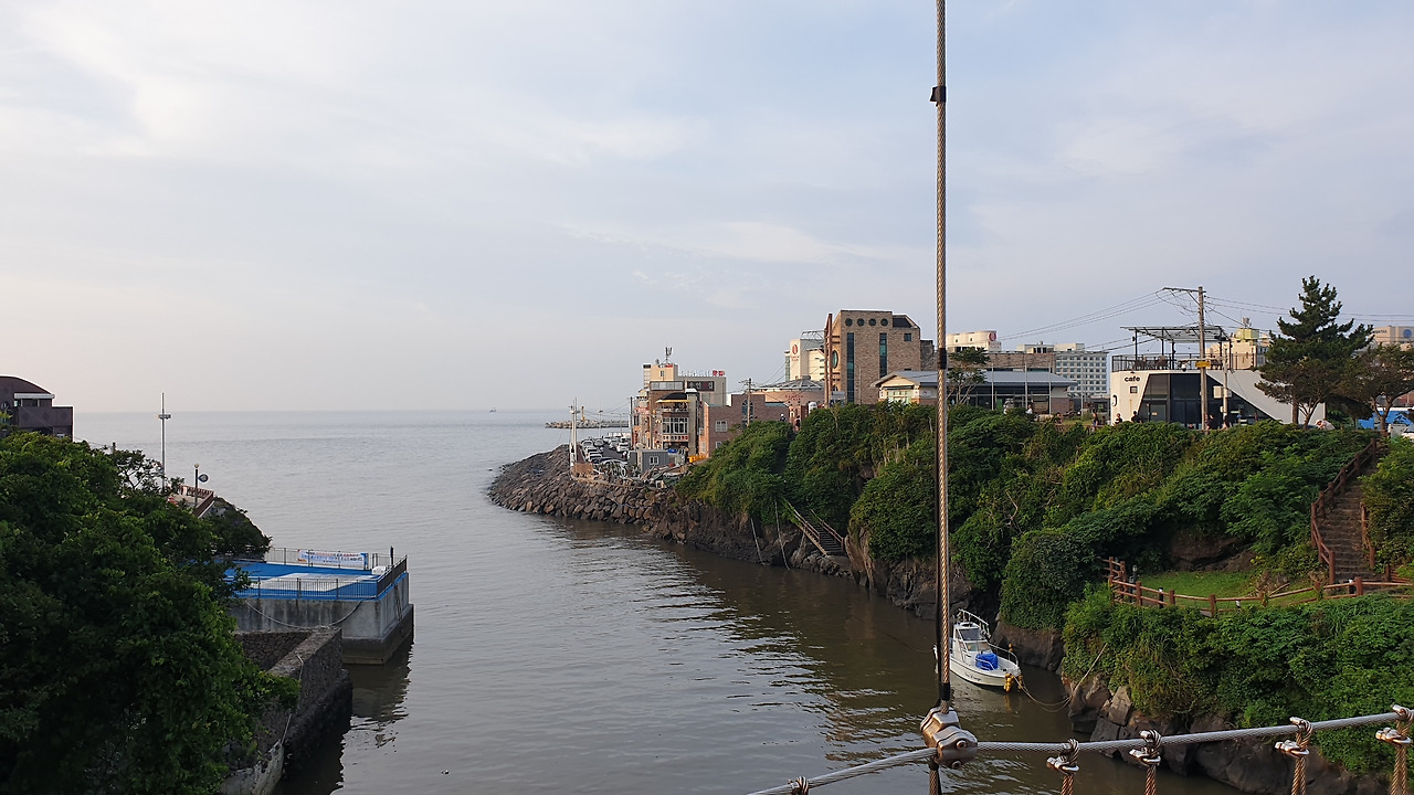 배는 더부룩했고 불편했다. 스쿠터를 반납한 뒤에 숙소까지 걸어가고자 했던 생각은 아주 탁월한 선택이 되었다. 소화를 시키며 스스로 자초한 불쾌감을 해소시키기 위해 대여점에서 숙소까지의 직선 길이 아닌 해안가를 경유하여 돌아가는 경로로 걷기 시작했다. 대여점 바로 앞에서부터 이어지는 용연계곡을 가로지르는 용연구름다리를 건너니 오른쪽에 횟집들이 나란히 위치하고 있는 제주올레길 17코스 동한두기 길이 나왔고, 그 반대로 바다 저쪽에는 해가 뉘엿뉘엿 지고 있어 노을이 지기 시작했다. 강렬한 햇빛을 반사시키는 바닷물에는 한줄기의 금물결이 만들어졌는데 그 황혼은 여행의 종료를 상징하는 듯 보였다.