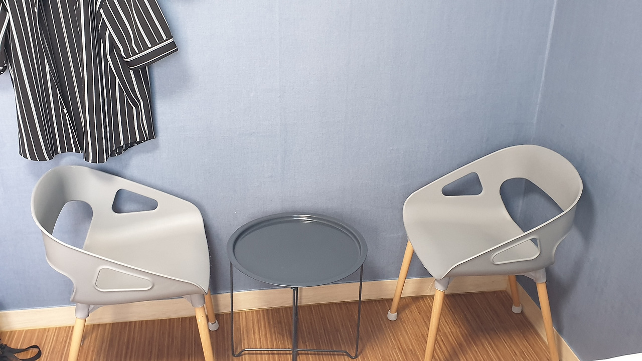 자바라 옷걸이 아래에는 테이블과 의자 두 개가 있었다. 공간도 작은데 굳이 이런 것까지 비치시켜야 했을까 하는 생각이 들 정도로 가벼운 느낌이 드는 가구들이었다. 의자야 그렇다 치더라도 그 사이에 있는 테이블은 그 이름이 무색할 정도로 간신히 구색만 갖춘 무게감 이어 자칫 발을 잘못 디뎌 그 위로 넘어지기라도 하는 날에는 종이 짝처럼 쉽게 뭉개져 버릴 것만 같은 느낌이 났다. 다리가 그렇게까지 얇은 테이블은 태어나서 별로 본 적이 없는 것 같다.