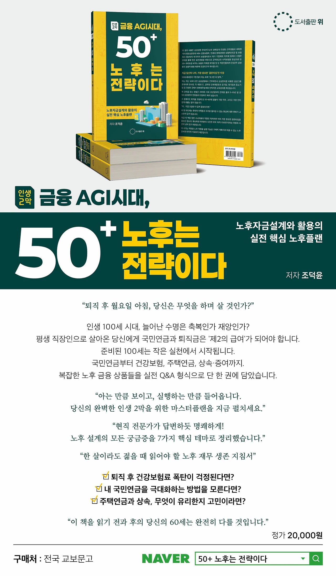 “노후를 막연히 두려워하지 말고, 전략적으로 설계하라. 이 책은 당신의 인생 2막을 가장 빛나게 만들어 줄 지침서다.”
