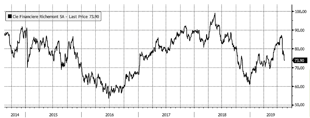 까르띠에와 반클리프&아펠 브랜드로 유명한 리스몽 그룹. 출처: Bloomberg