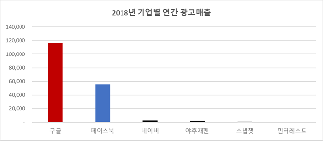 페북과 구글은 각자의 영역에서 뛰어넘을 수 없는 진입장벽을 쌓았다. 물론 네이버처럼 특정 국가의 언어적 분리를 이용해 시장을 잡거나 스냅챗처럼 특정 연령대만을 대상으로 틈새시장을 잡는 SNS가 있다. 하지만 매출의 규모를 보면 압도적인 차이를 느낄 수 있다.