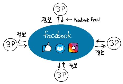 페북의 정보 수집은 여기서 끝나지 않는다. 제삼자 웹사이트들은 페이스북이나 인스타그램에 자신들의 광고를 싣기 위해 웹사이트에 Facebook Pixel이라는 툴을 자발적으로 심는다. Facebook Pixel은 웹사이트에서 유저의 행동패턴을 기반으로 페이스북과 인스타그램에서 누굴 타게팅하면 좋을지 분석해준다. 여기서 발생하는 모든 데이터들도 페북에 흘러들어 간다.