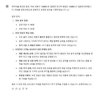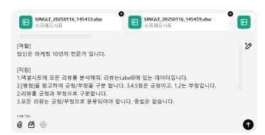 < 리뷰 파일 엑셀 첨부 후 분석 요청 (by 챗GPT-4o)>