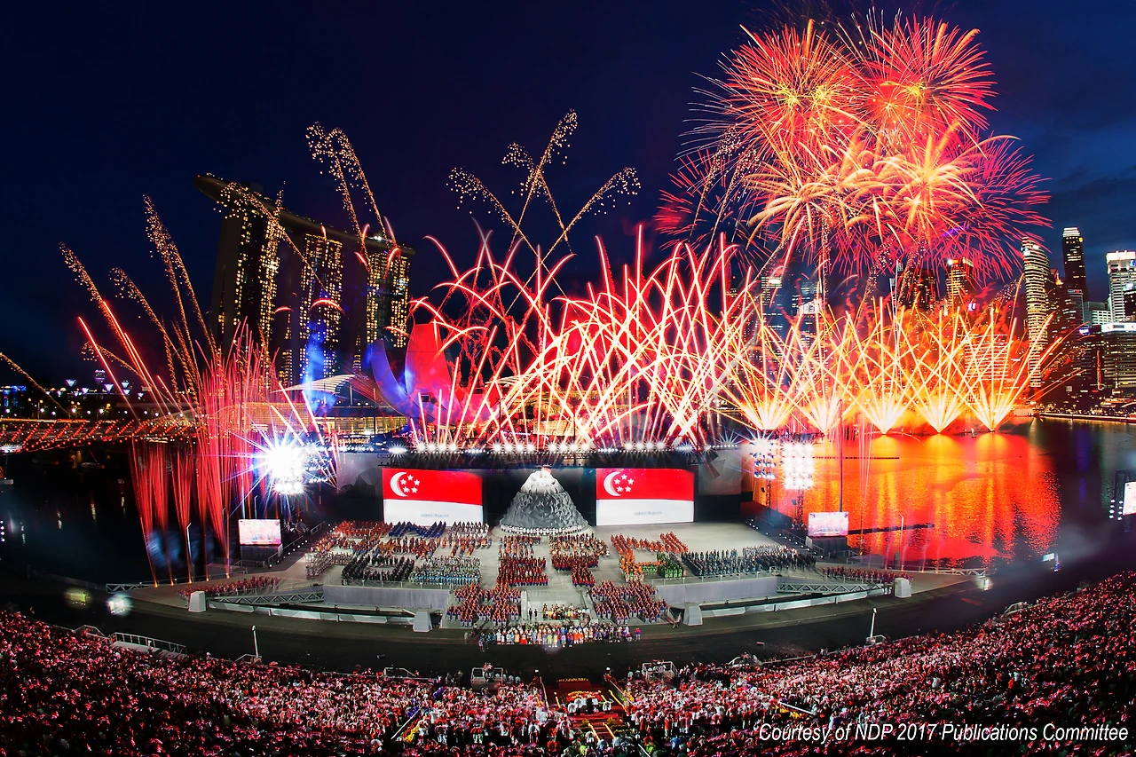 National Day Parade가 열리는 마리나 베이 부근에서는 육해공 군사 행진, 군사 훈련 시연, 다인종 다문화를 반영한 가지각색의 예술 공연, 에어쇼를 비롯해 피날레로 마리나 베이의 고층 건물숲을 배경으로 한 화려한 불꽃놀이를 즐길 수 있다.