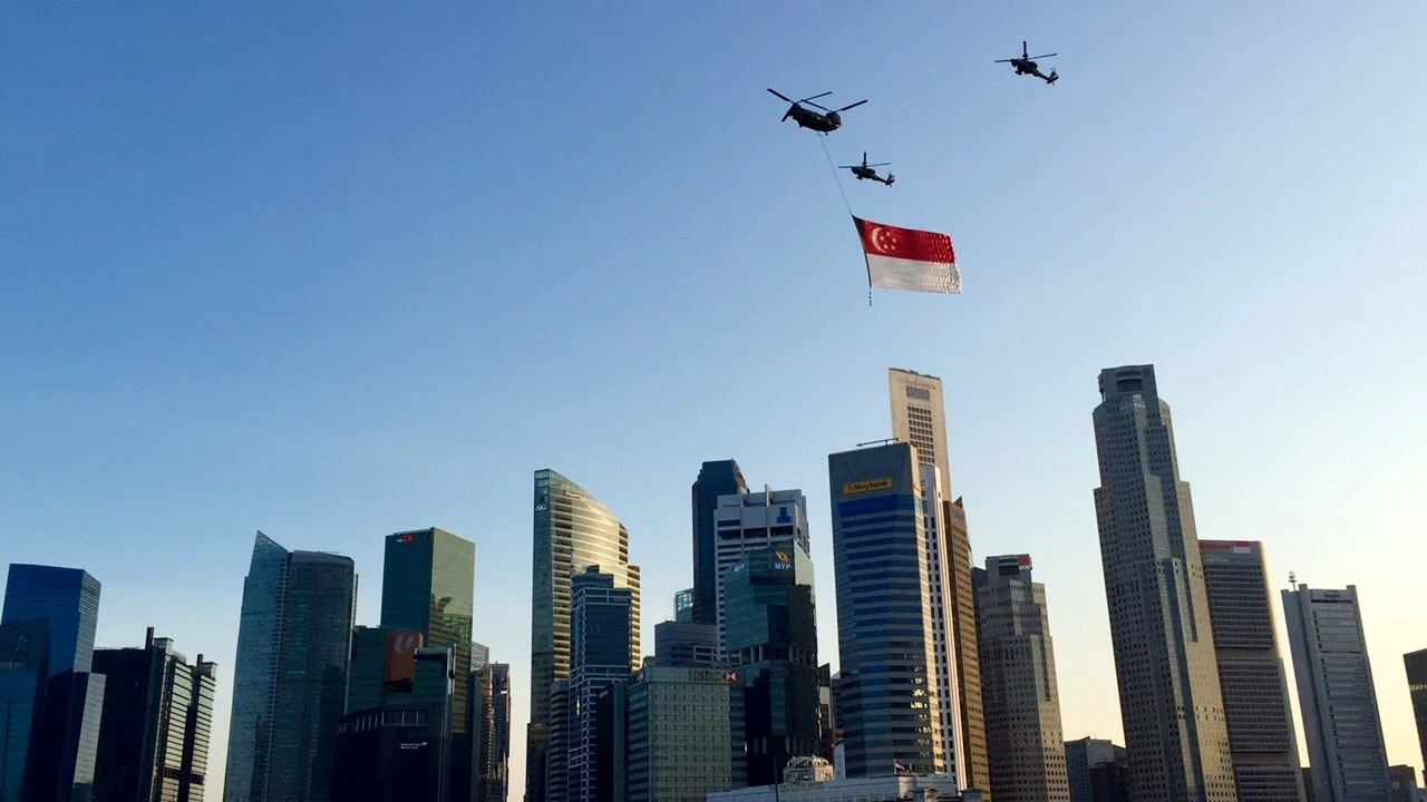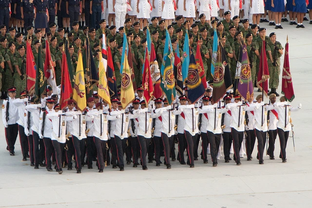 싱가포르 남성들은 우리나라처럼 의무 군복무가 있다. 대학 (합격 후) 입학 이전에 2년의 출퇴근제 군복무를 의무로 복무한 후 대학생활을 시작한다. National Day Parade에서도 군사 훈련 예행 및 무기 시연은 하이라이트다. 육해공군이 모두 행렬하고 그 해의 신식 탱크, 포탄, 낙하산 부대, 도심 속 제트쇼까지 국방력이 실감나게 느껴지도록 시연을 펼진다.
