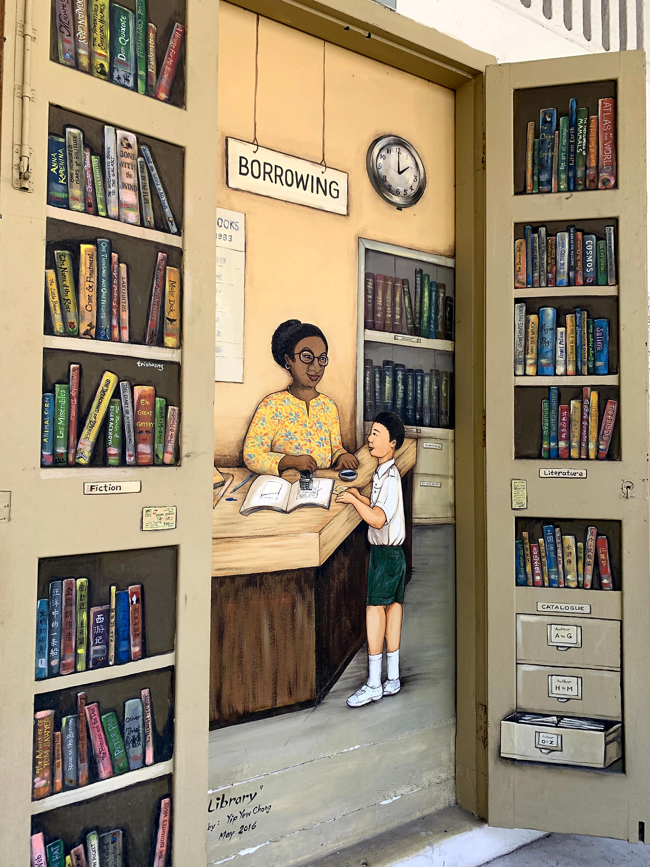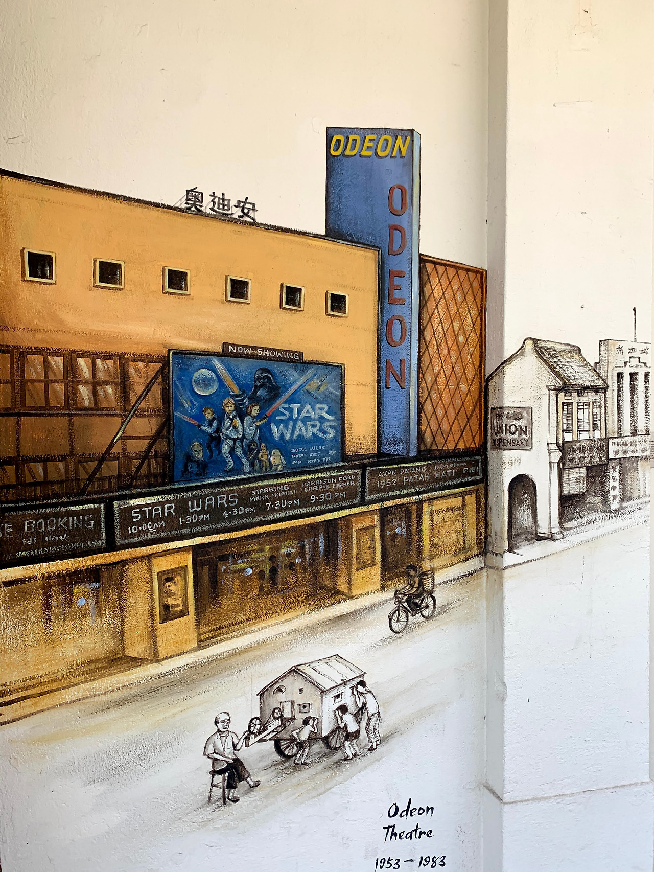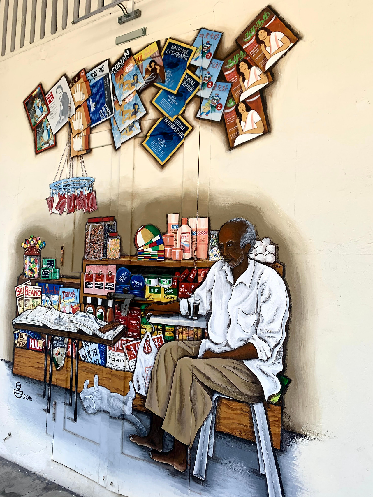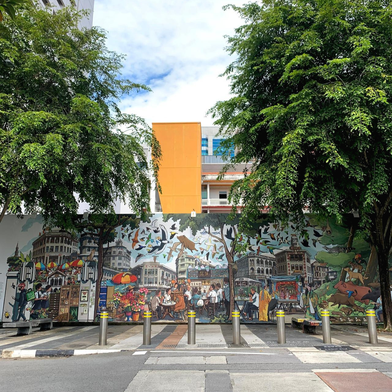 디자인센터와 국립박물관 사이의 Walteroo Street를 걷다 이끌리듯 들어간 건물에서 일상의 예술을 선물로 받았다. 1950-1980년대 싱가포르 문화생활의 모습이 건물 외벽에 아크릴 벽화로 그려져 있었다. 도서관에서 책을 빌리는 학생, 스타워즈가 상영 중인 영화관과 영상 문화로 상징적인 건물, 수입 잡지와 생필품을 파는 가판대 할아버지까지. 이런 게 일상 속 예술이자 역사 공부가 아닐까. 나도 모르게 과거의 그들을 바라보고, 상상하고, 애정 어린 마음까지 갖는다. 예술의 힘이다. 순식간에 현대를 살아가는 나를 싱가포르의 과거 속으로 데려가고, 한국인인 내가 싱가포르 문화에 대해 사유하게 만들었다.